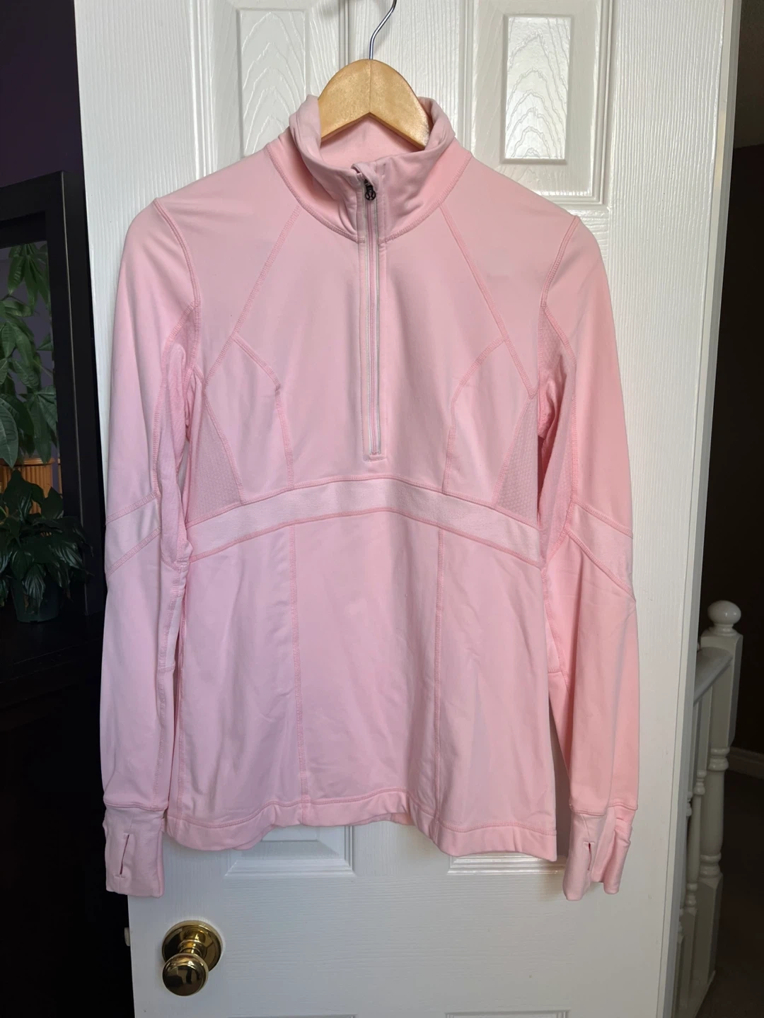 86Selling a cute Lululemon Athletica jacket in a lovely pink colour! It's a size 8 and made of a blend of nylon and spandex for a comfy fit. Perfect for workouts or just running errands around town