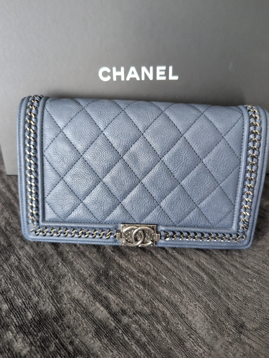 Selling a beautiful Chanel Boy Wallet on Chain in a lovely light blue colour. It's in great condition and comes with the box, bag and certificate of authenticity. Perfect for keeping your essentials organized while adding a touch of luxury to your outfit!