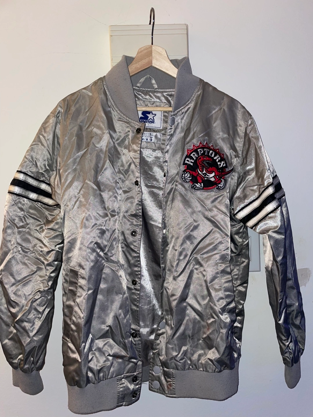 Selling a Starter jacket featuring the Toronto Raptors logo. It's a size medium and in good condition. Perfect for any Raptors fan! Firm Price