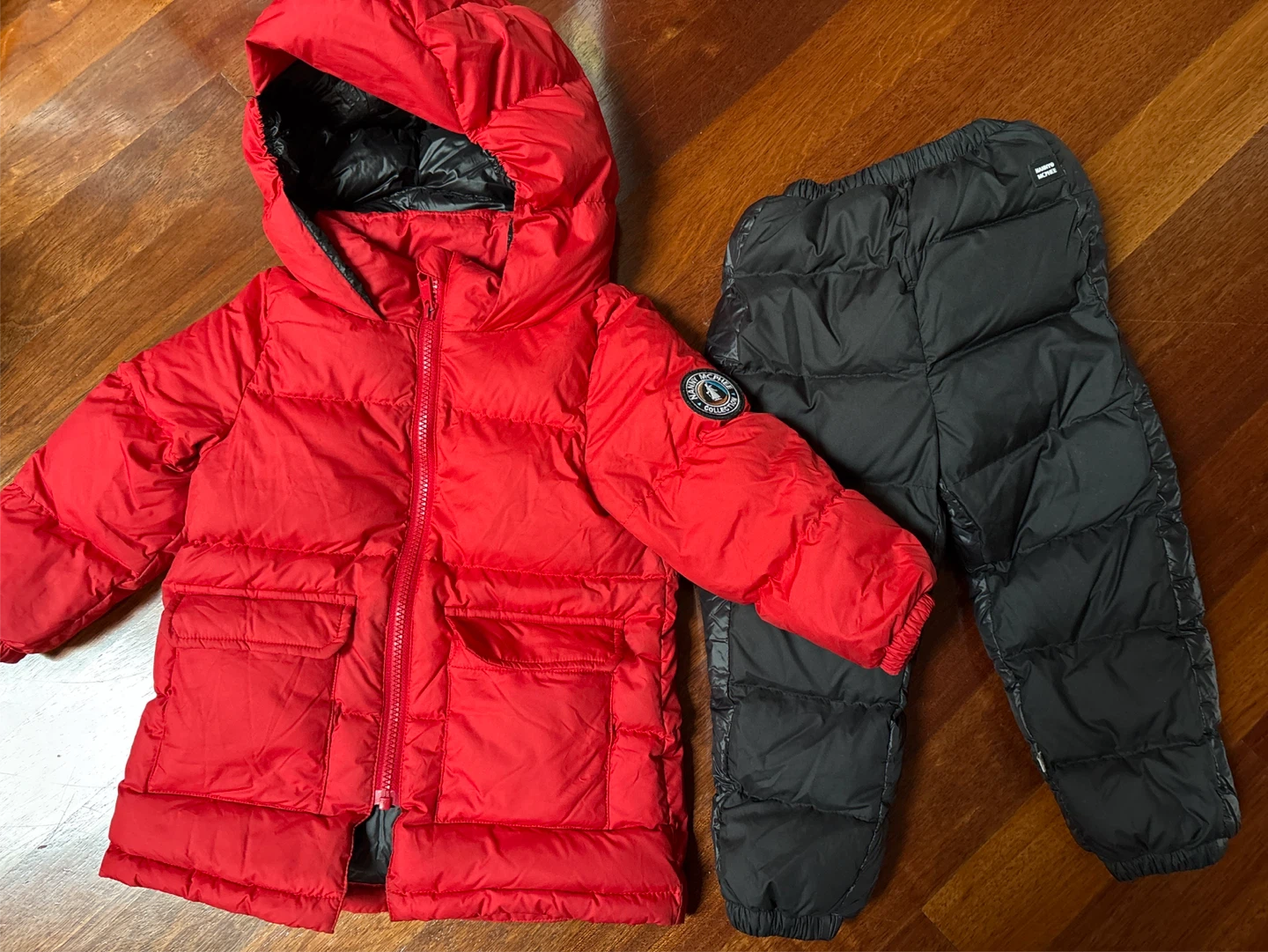 A cute and cozy puffer set from the Nanny McPhee Collection! The set includes a bright red puffer jacket and black puffer pants. Pickup only in Thornhill