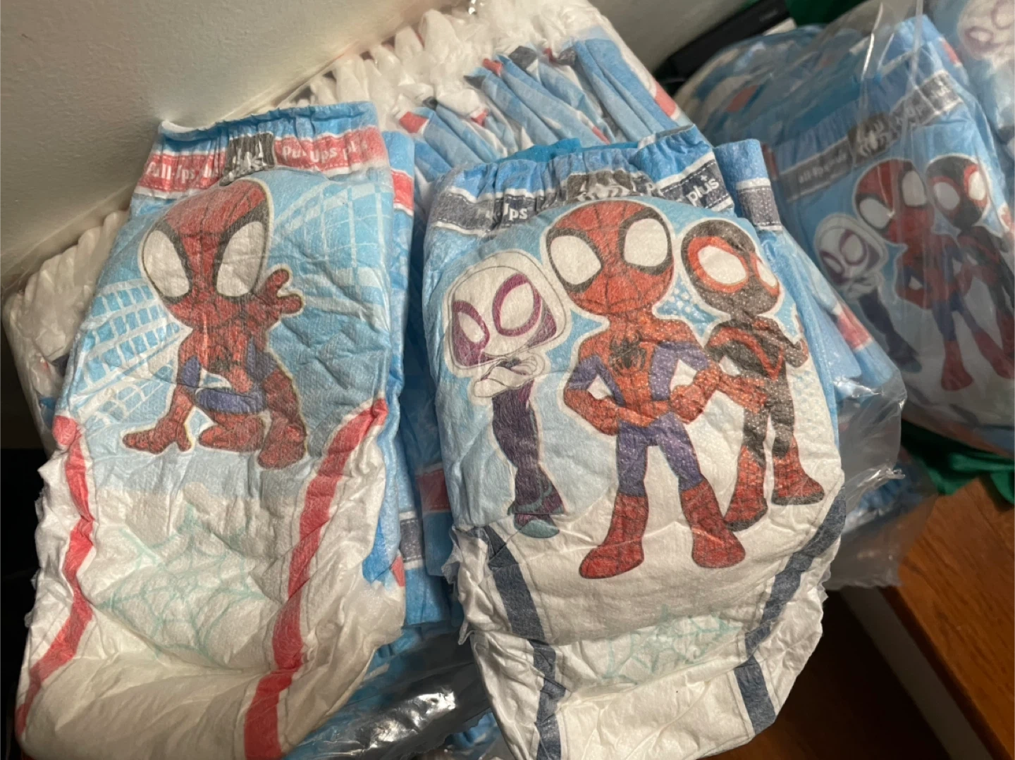 73Selling a pack of Pull-Ups training pants featuring Spiderman! They are size 3T-4T perfect for your little one who is learning to use the potty. We outgrew them so they’re up for grabs. One pack 3-4T and four packs of 4T-5T