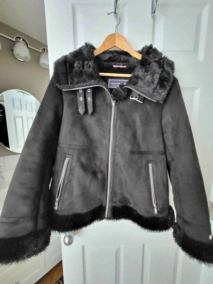 Tommy Hilfiger women's winter coat. Size Medium. Worn once. Very warm. Faux fur like interior and exterior feels almost like a suede material. Comes to the waist. Bought for almost $150.
