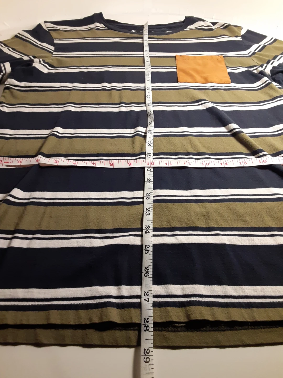 Le 31 - striped t-shirt, sized large(see images for measurements). Made from organic cotton and featuring a unique striped pattern with a contrasting functional pocket detail. Very soft and comfortable material. Lightly used, basically new.