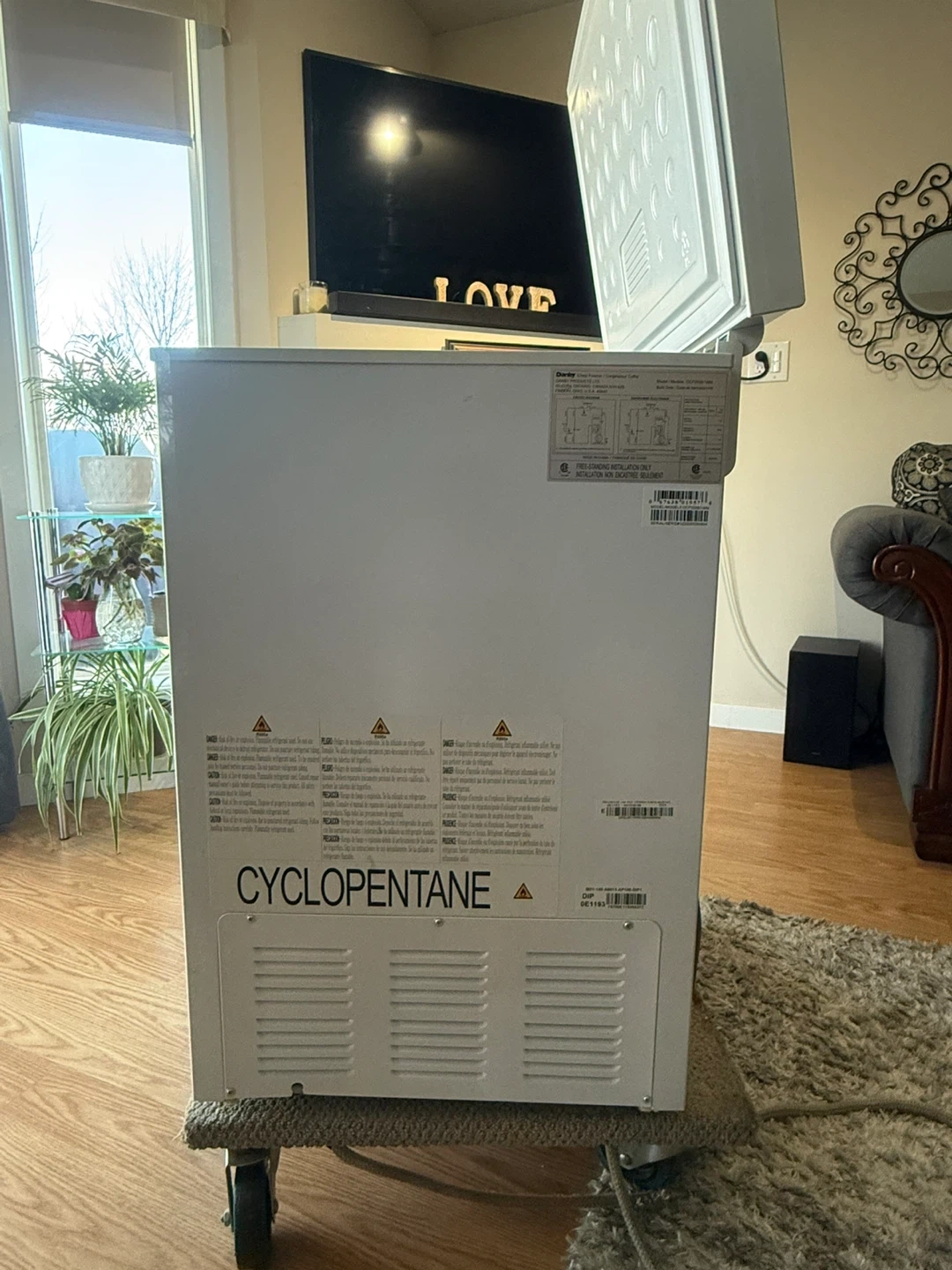 Selling a Danby chest freezer, model DCF050B1WM. It's in great working condition and ready to keep your food frozen. Perfect for extra storage during the holidays or for stocking up on your favourite frozen treats!