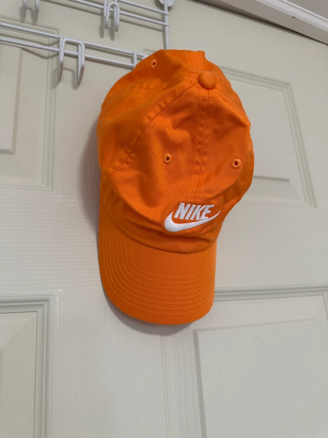 Here’s a Nike Club Cap in a vibrant orange colour! It's a size S/M and made of 100% cotton. Perfect for adding a pop of colour to your outfit!