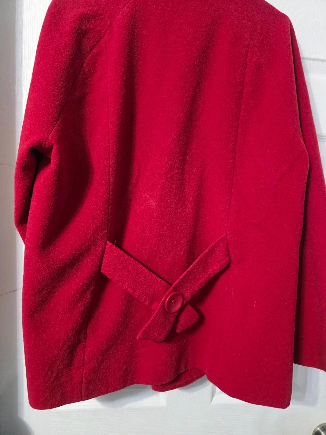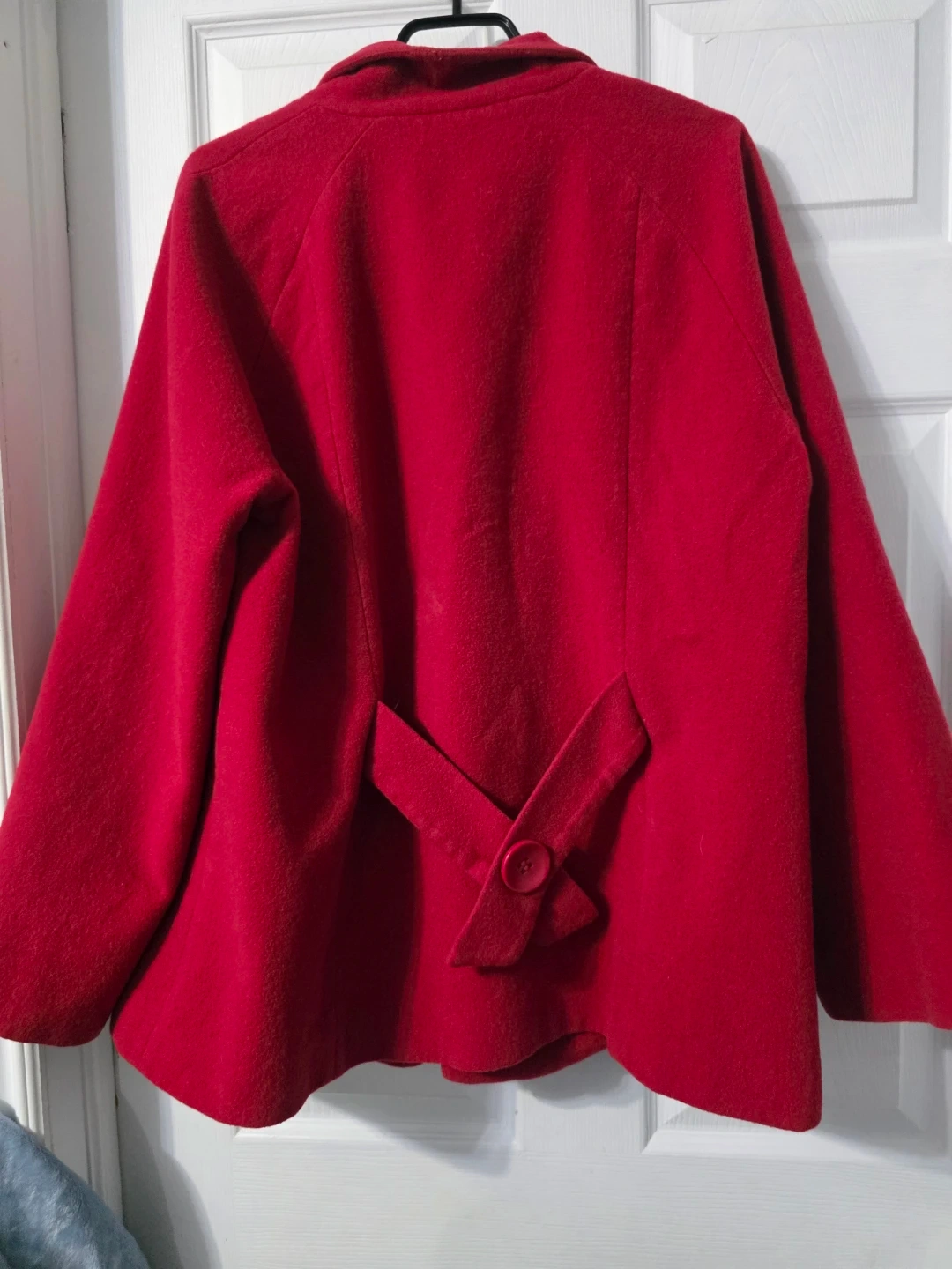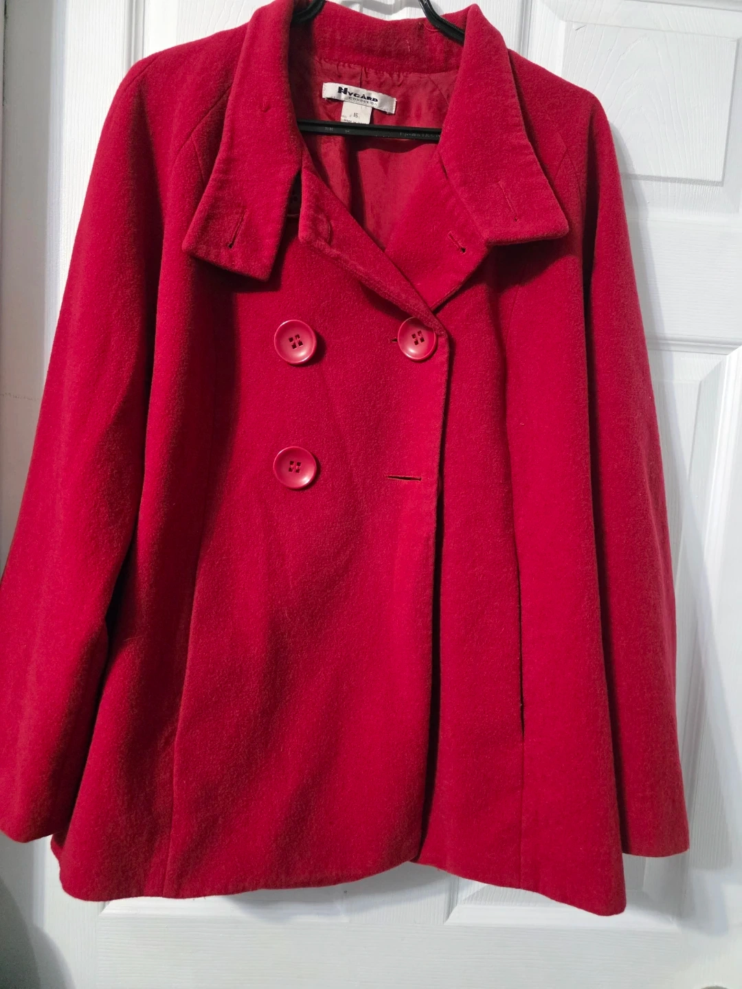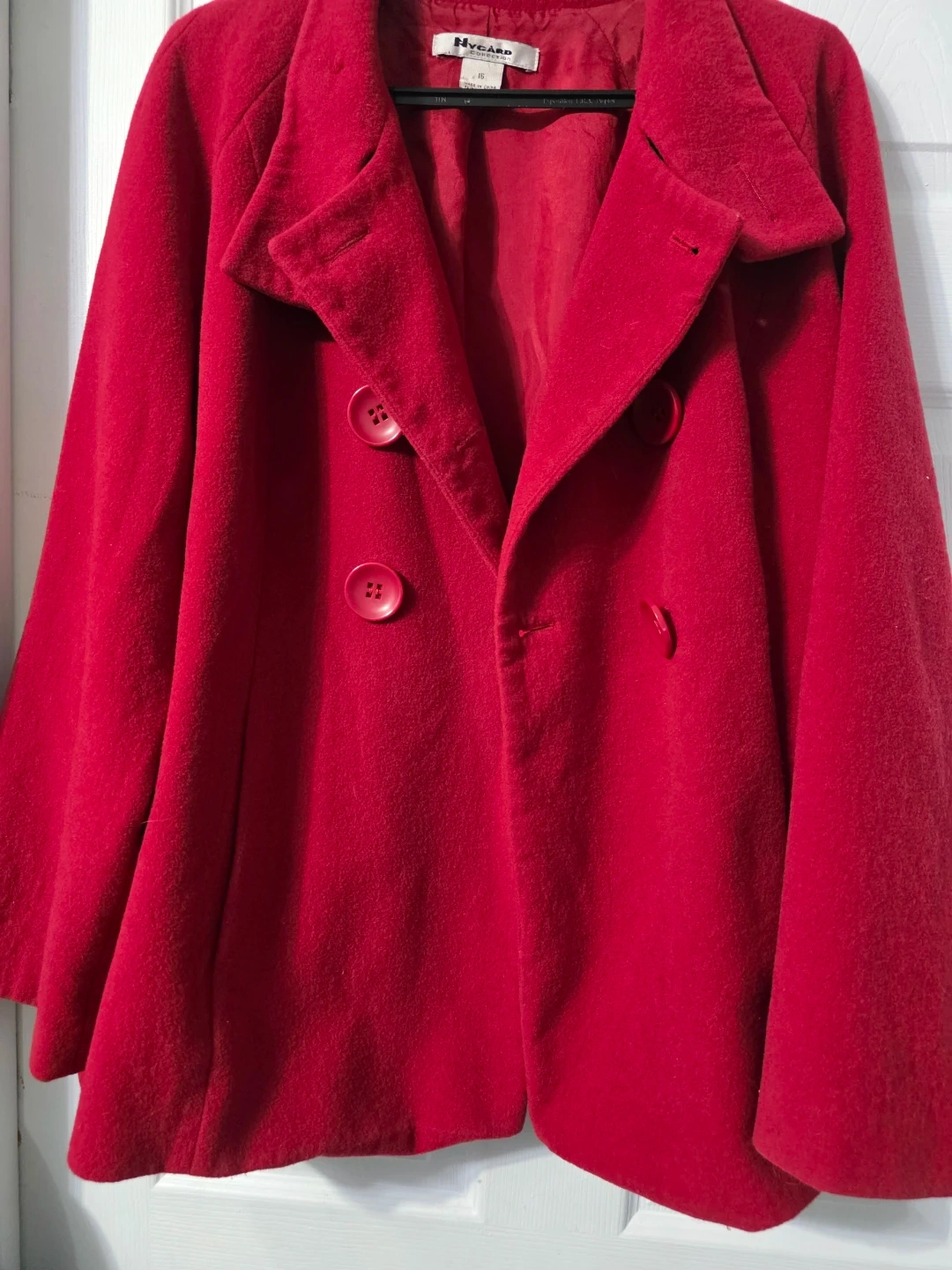 Selling a beautiful red wool blend coat from Nygard in size 16! This stylish coat is perfect for adding a pop of colour to your wardrobe. It features a classic double-breasted design and is in great condition. A must-have for the colder months!