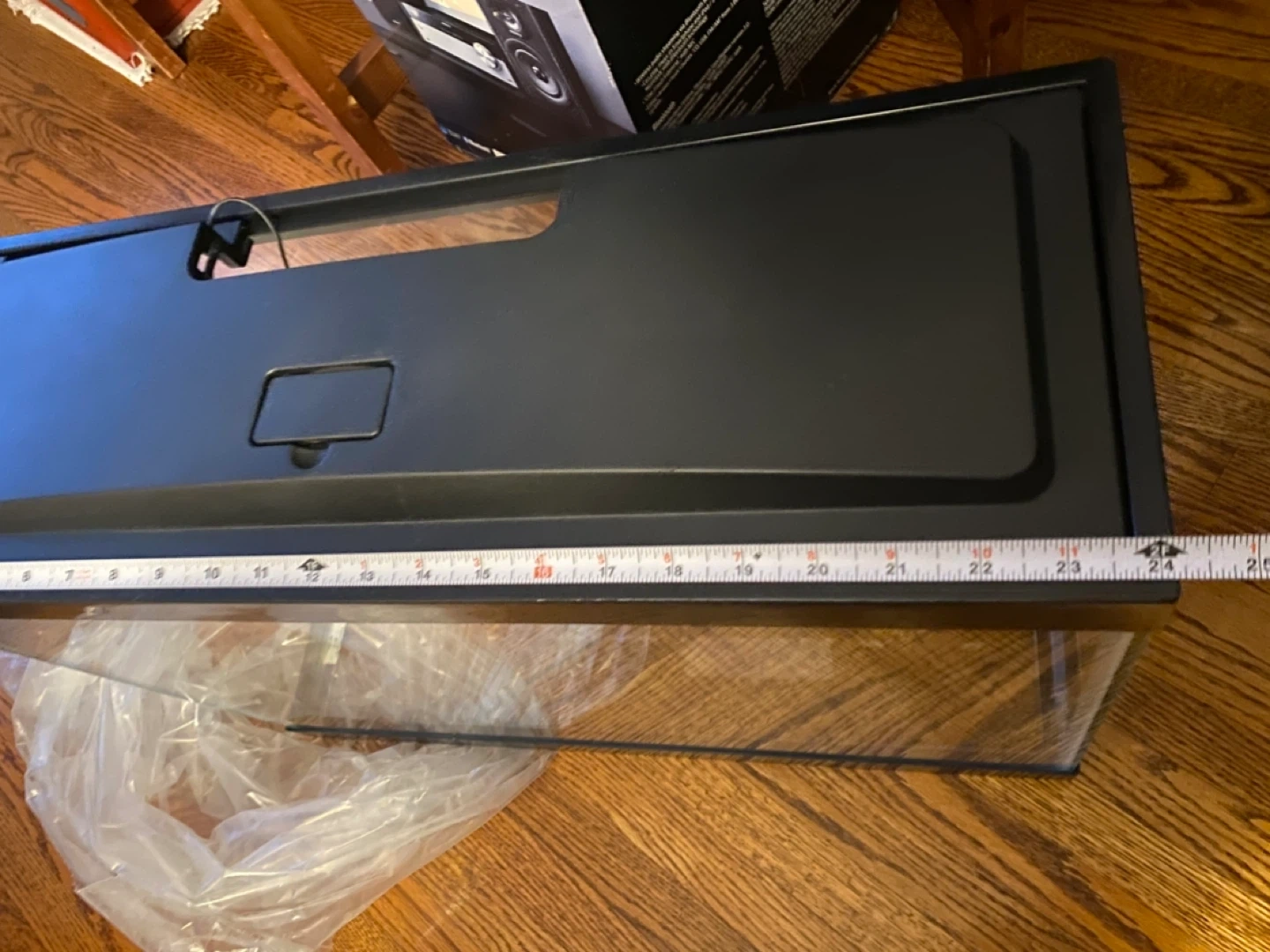 This tank measures approximately 24 inches in length, 8.5 inches in width, and 16 inches in height. I calculated it online and it’s 14.13 gallons/53.49 litres.