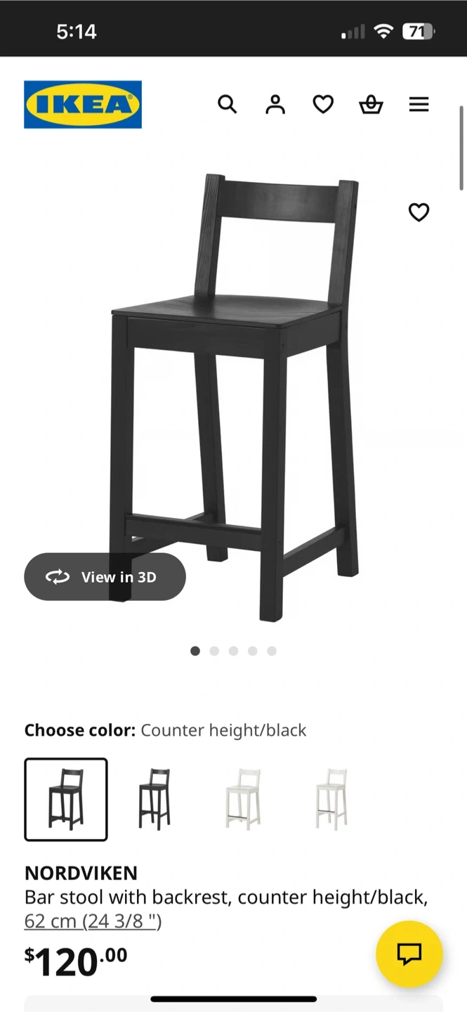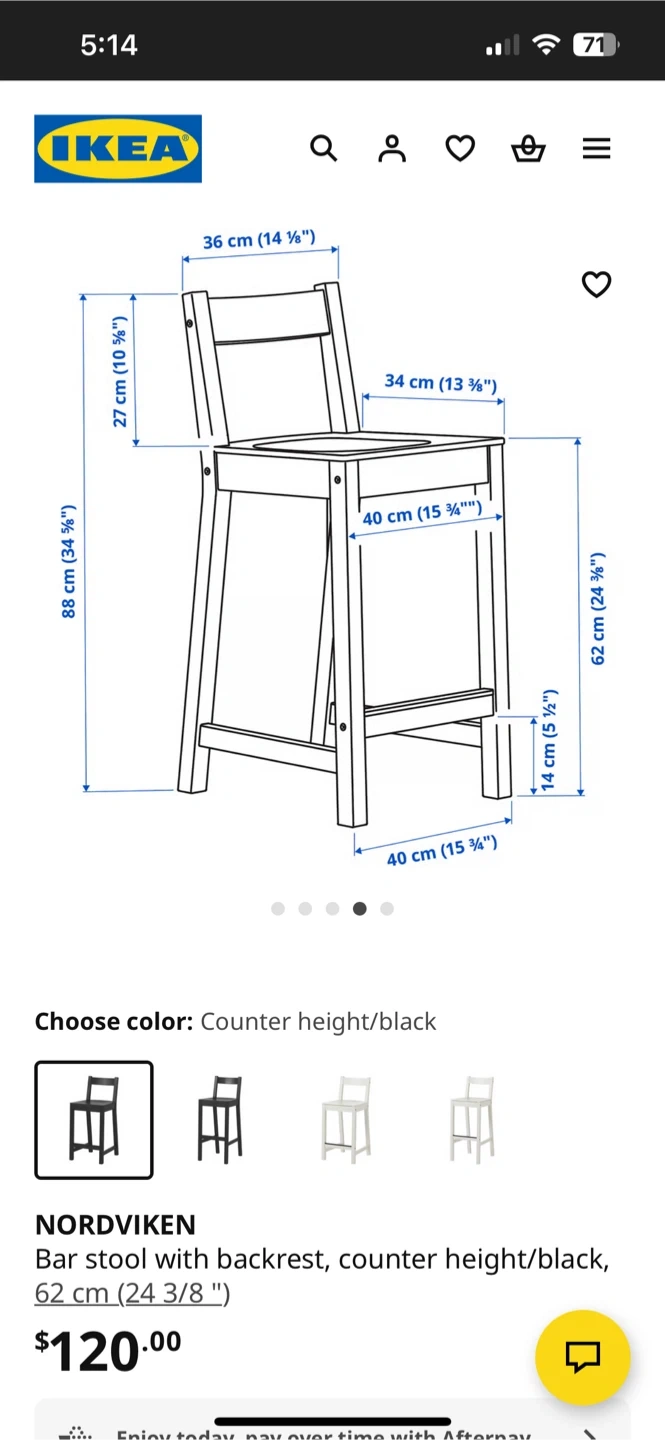 Selling a set of two IKEA Nordviken wooden bar stools in black. They're counter height and in great shape! The dimensions are 62 cm (24 3/8 "). Originally bought for $120 each selling for $50 each!
