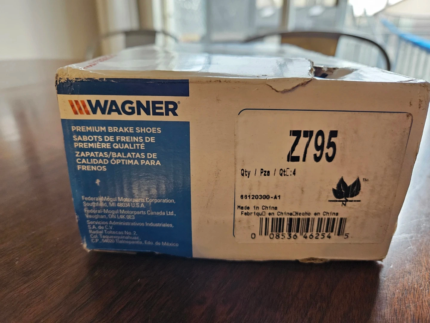 Selling a brand new set of Wagner Premium Brake Shoes, model Z795! The box includes 4 shoes. Perfect if you're looking to replace your brake shoes! They were intended for a 2010 Dodge Grand Caravan, but we're selling ours and buying a new vehicle.