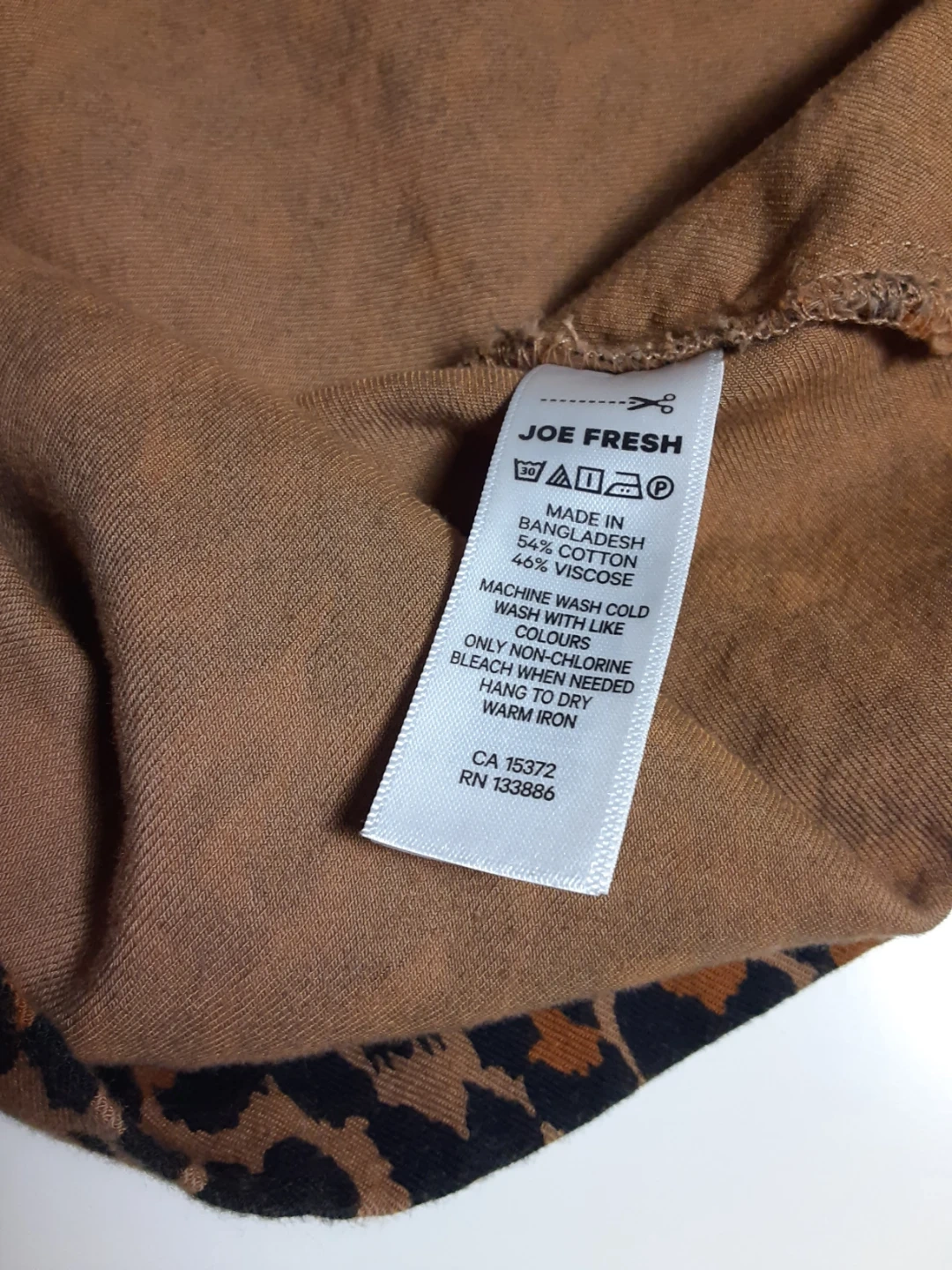 Joe Fresh - slim fit large(see images for measurements), short sleeve button-up leopard print shirt. Gently used, in excellent condition, very soft/comfortable material (54% cotton/46% viscose). Perfect for adding a bit of flair to your wardrobe.