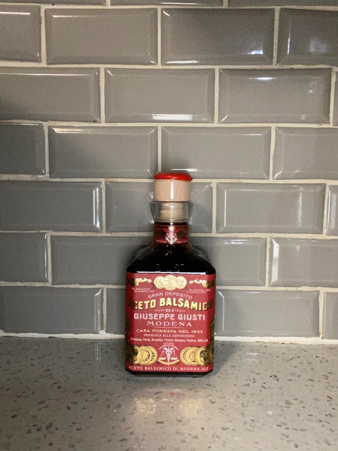 Selling a bottle of Giuseppe Giusti Balsamic Vinegar of Modena IGP. It's a Gran Deposito variety, founded in 1605. Perfect for adding a touch of flavour to your favourite dishes!