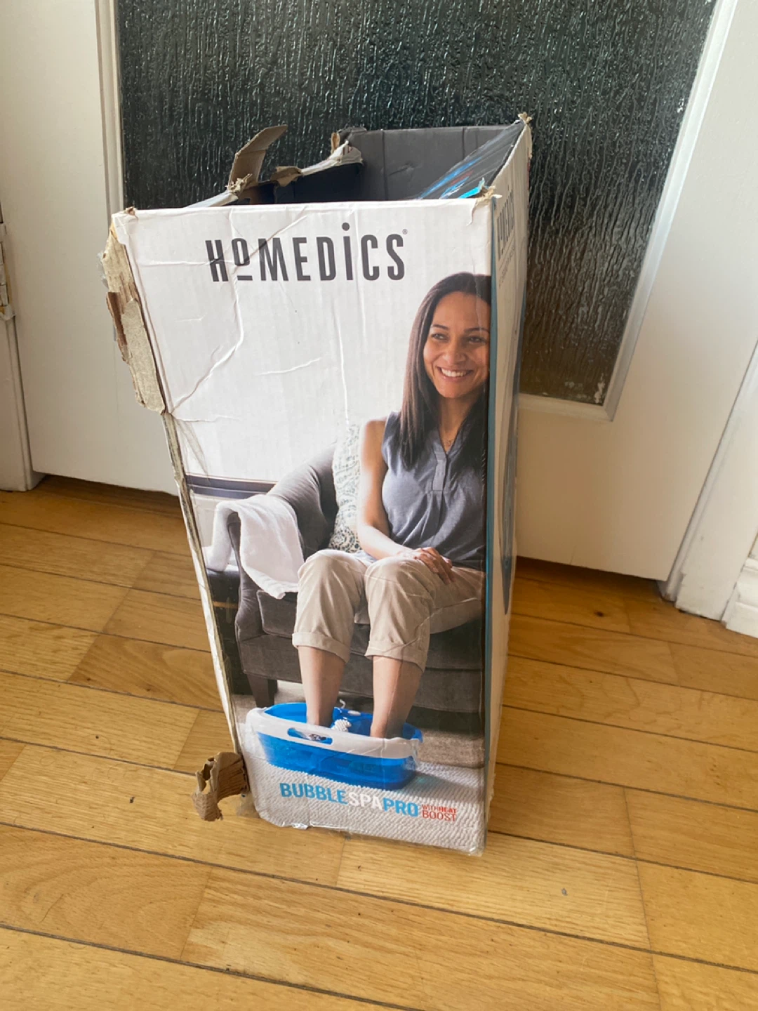 Selling a HoMedics Bubble Spa Pro Footbath! It has invigorating bubbles and 4 pressure-node rollers to massage tired arches and soles. The box is included!