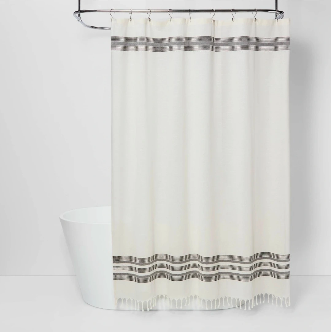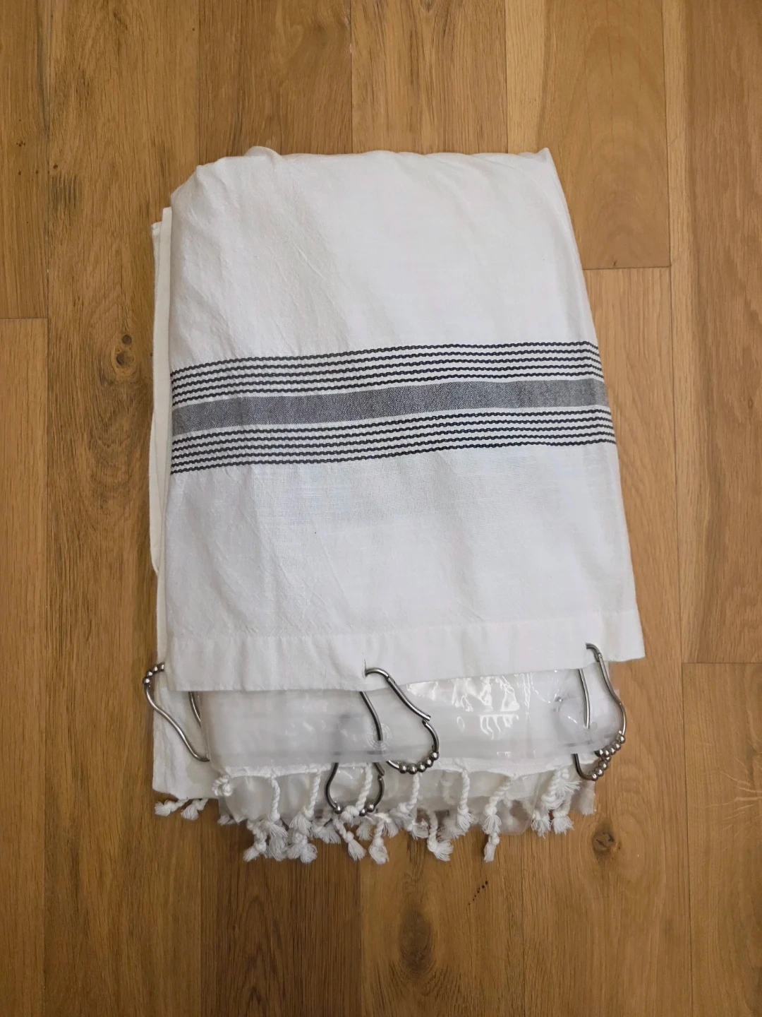 Selling a set of two like new shower curtains WITH the plastic liners and metal rings!