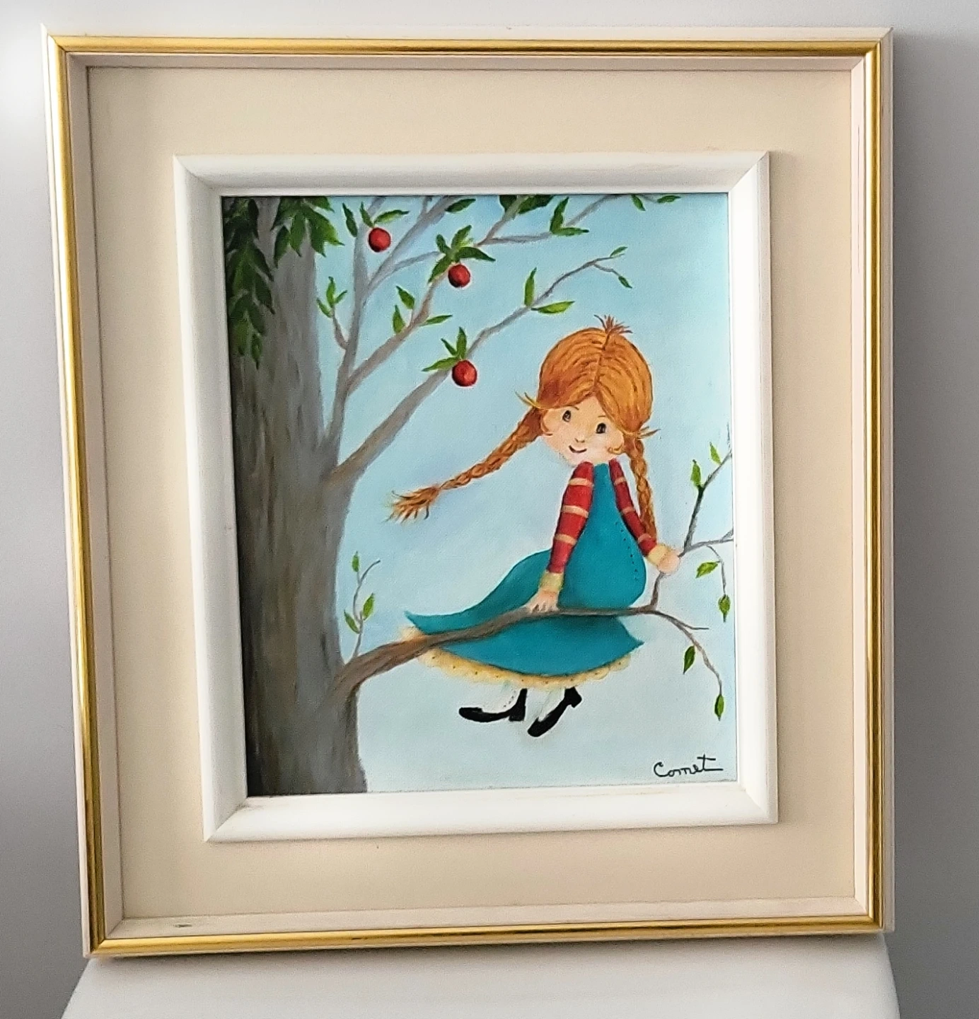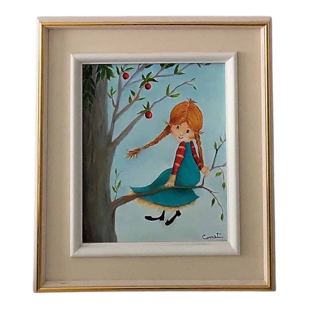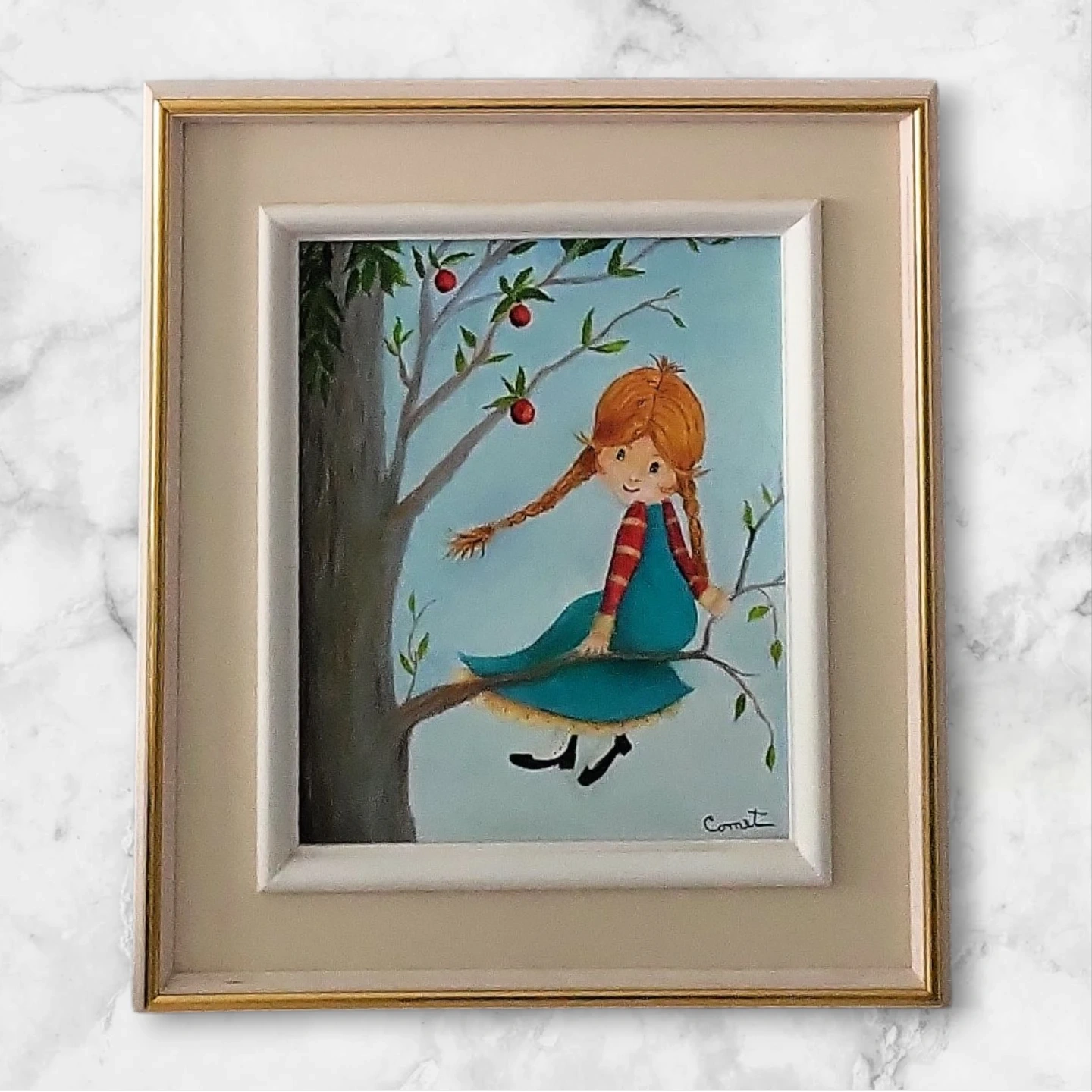 This framed art features a charming illustration reminiscent of Anne of Green Gables. The frame measures 16" x 17.5 inches. It's a lovely piece to add a touch of whimsy to any room