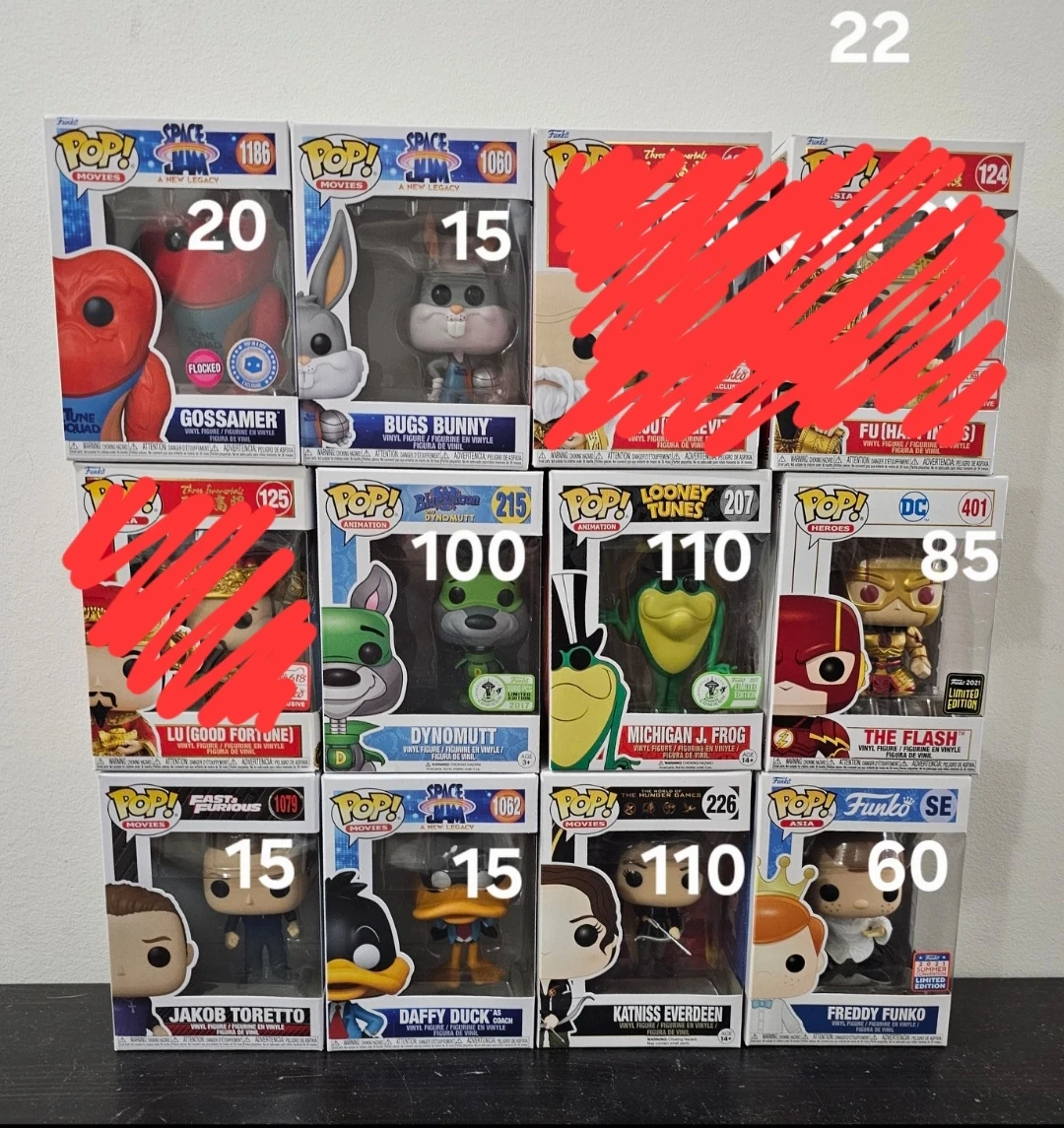 Selling a variety of Funko Pop! figures from different series, including Space Jam, Looney Tunes, DC Heroes, and Fast & Furious! All figures are in great condition and come in their original boxes.
