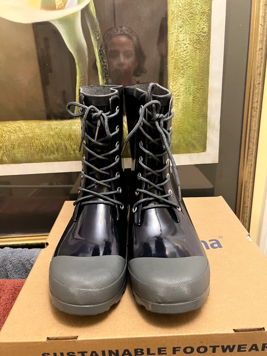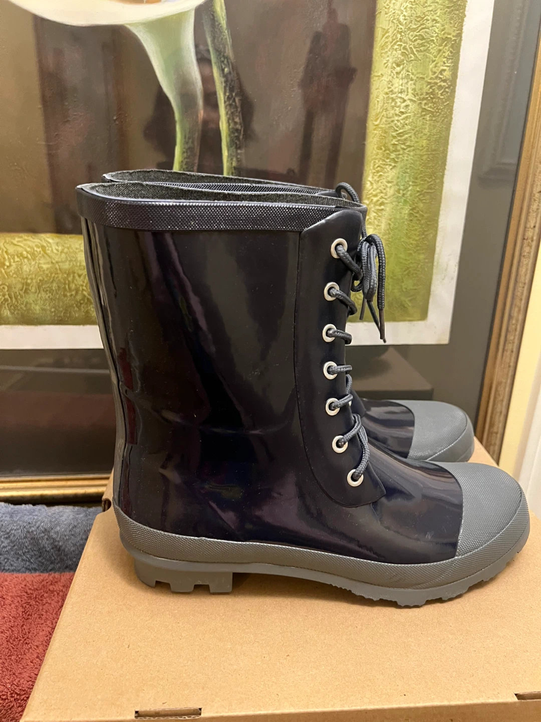These boots are Brand New In Box (NIB) and have never been worn. They are perfect for keeping your feet dry and comfortable during messy weather, from heavy rain to winter slush! Navy blue