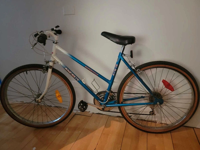 This is a used Supercycle AT1815 mountain bike, ready for trails or city streets. It features a sturdy frame and reliable components, perfect for recreational riding. The bike is in fair condition, with some cosmetic wear. A few scratches on the paint, but mechanically sound. The tires hold air, and the brakes and gears function. A little TLC and this bike is ready to go. Bought if for my wife. She used it one time. She's 5'6 and it's good hight size for a human that big