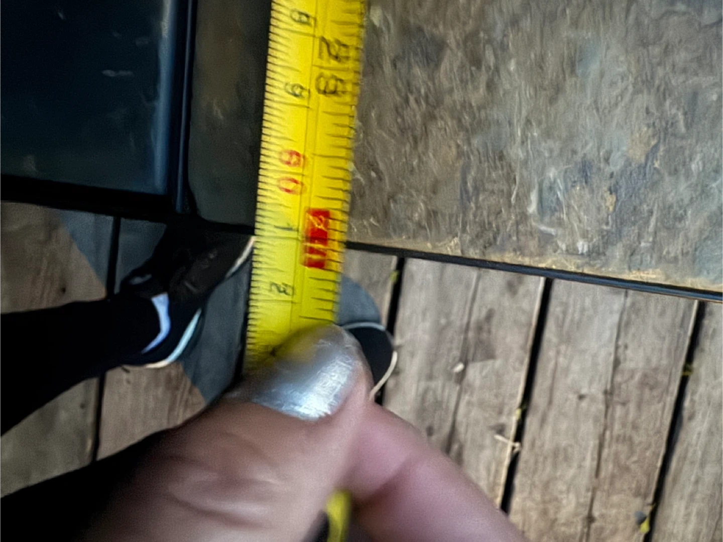 I'm selling a square outdoor table with a slate tile top and metal frame. It measures approximately 28 inches by 28 inches. It's perfect for a patio or small outdoor space!