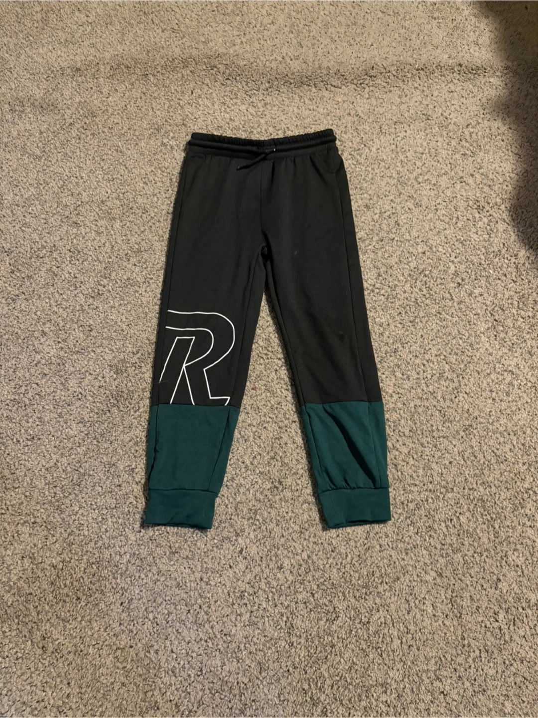 Monkey Bars kids joggers, black with dark green accent. Size 5-6years
