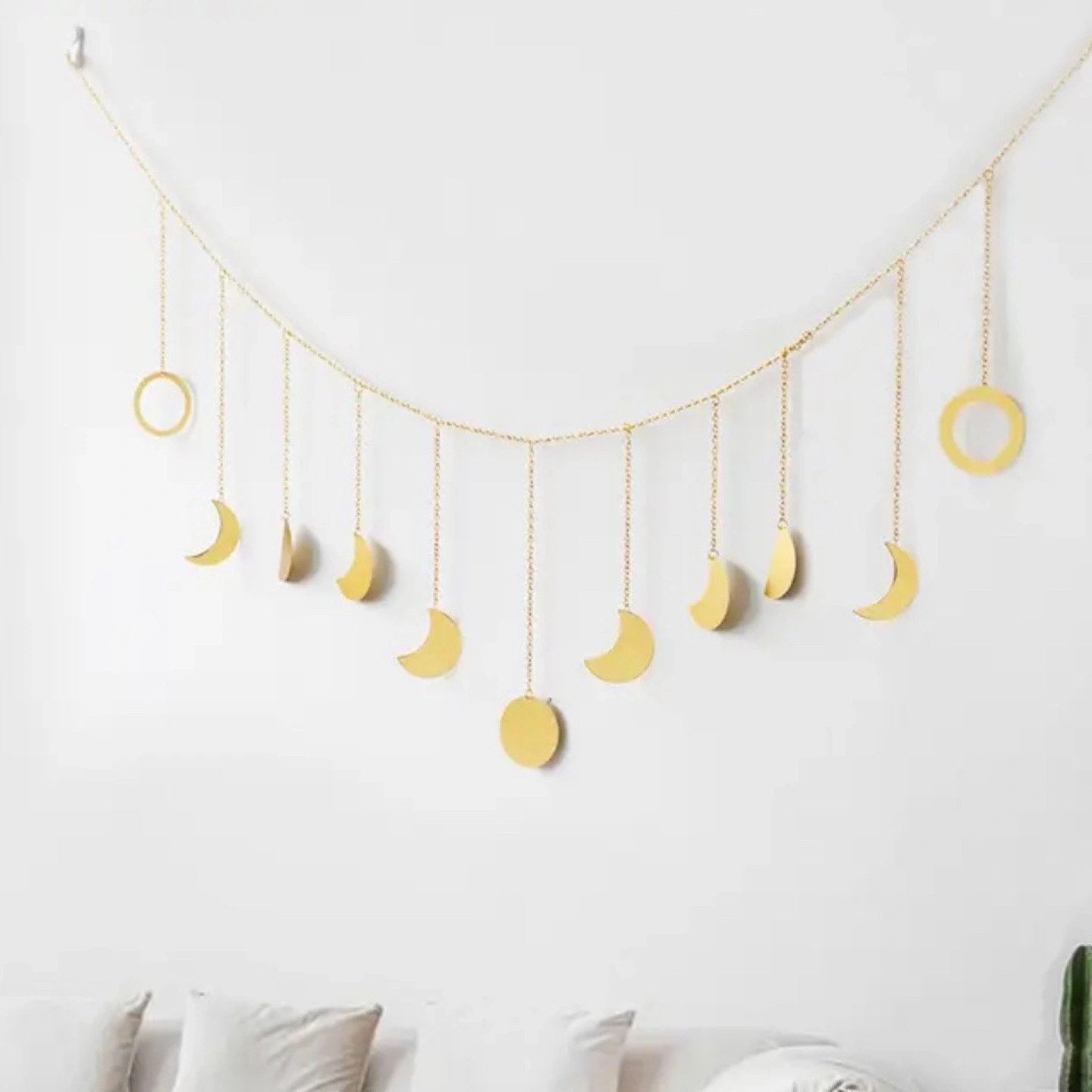 The kit features gold-coloured metal pieces in various moon phases, along with chains to connect them.
