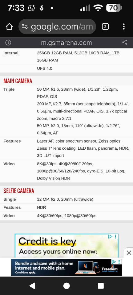 Camera System: Triple setup with 200MP Periscope Telephoto, 50MP Wide, and 50MP Ultrawide lenses (ZEISS Co-engineered)
