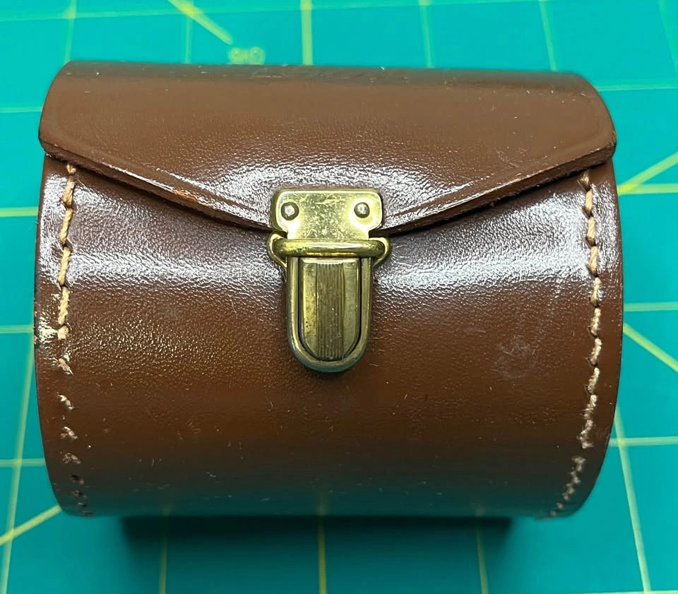 Clean vintage telephoto for the Walter Voss Diax rangefinder system. Optics look clear to the eye under room light—no obvious haze, or separation seen in photos. Aperture is responsive (shown at multiple stops). Normal cosmetic wear from age; lettering crisp. Leather Diax case shows scuffs at edges; clasp works. Sold as a vintage manual lens—please review photos for exact condition.