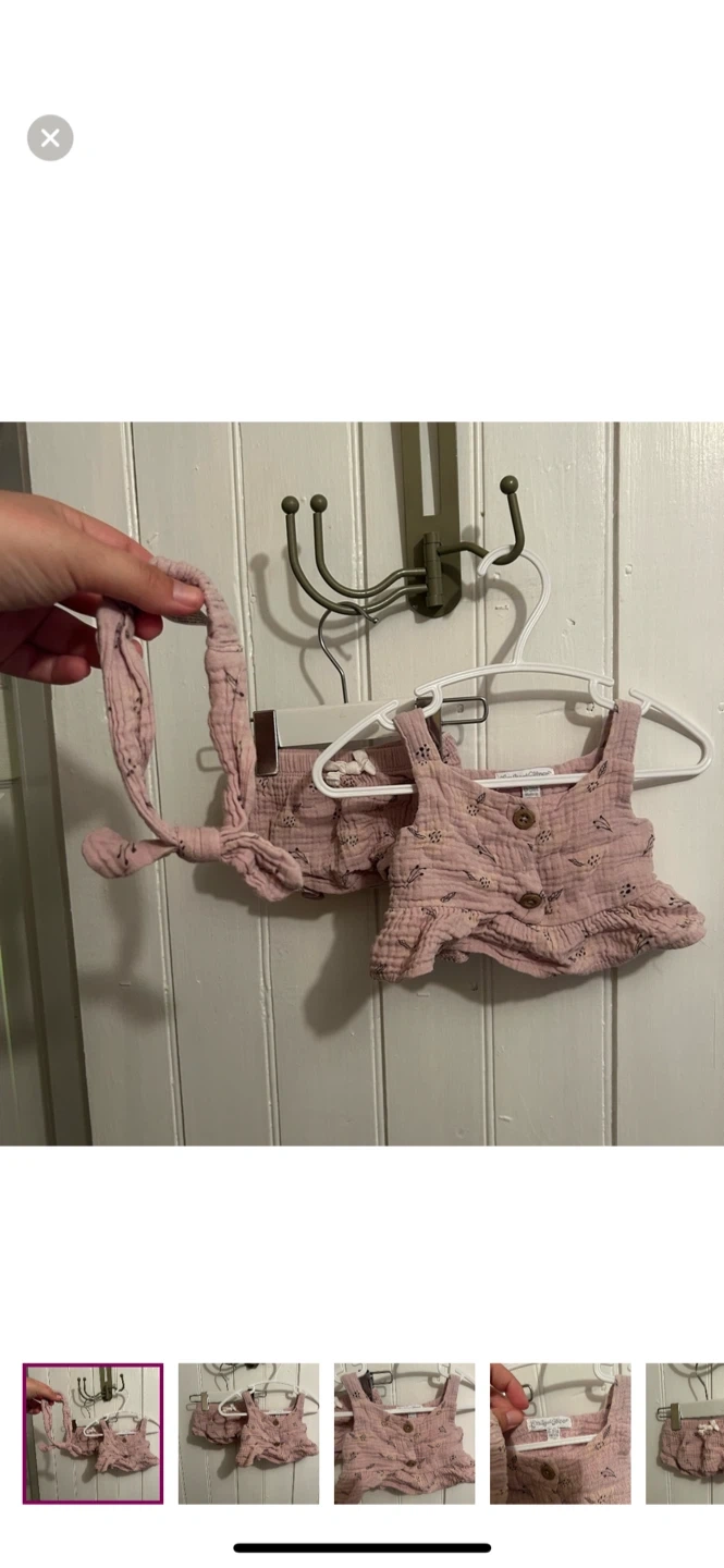 Emily & Oliver brand. Matching peplum tank top and shorts set with headband bow. Purple with pink florals. Size 0/3m. Brand new condition