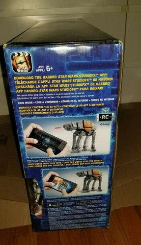 This item is a larger version of the standard combat AT-ACT - Motorized walking and firing - Download the hasbro star wars studiofx app to control the action from your smart device or use built-in controls. - Remotely control the AT-ACT - 18" Tall - No assembly required - Fires nerf darts!