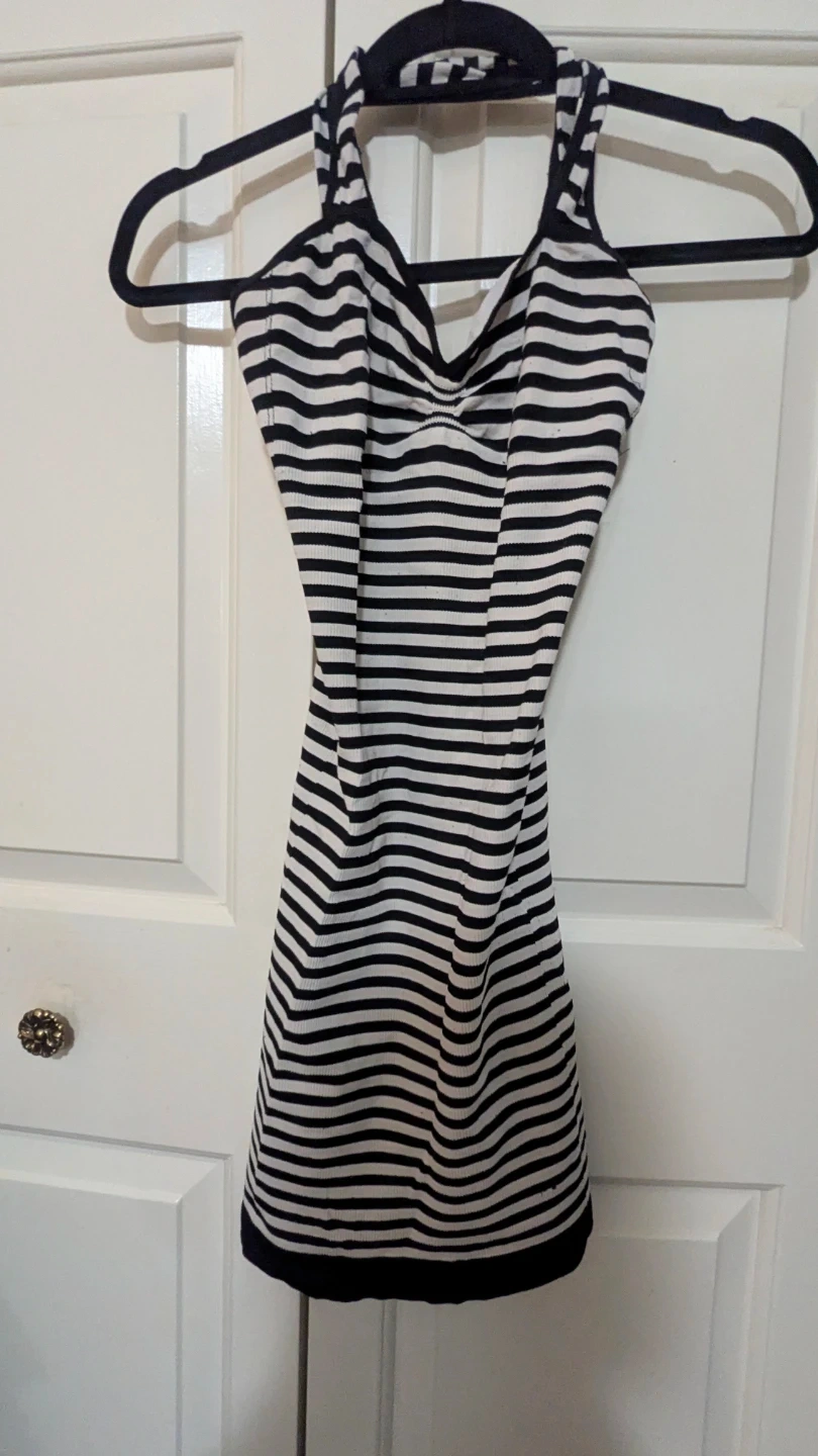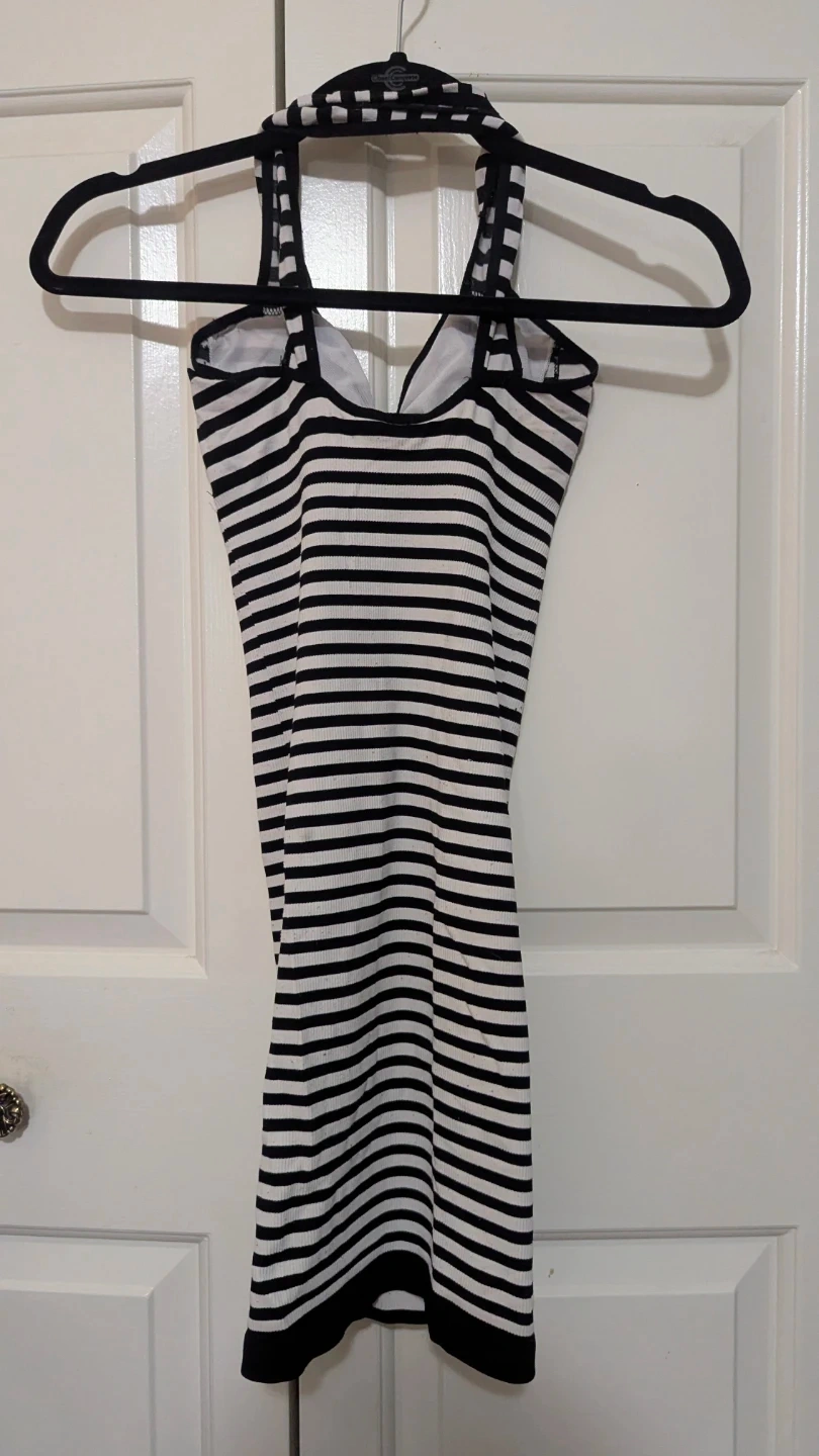 Here's a cute striped halter top! It's black and white and in great condition. Perfect for summer!