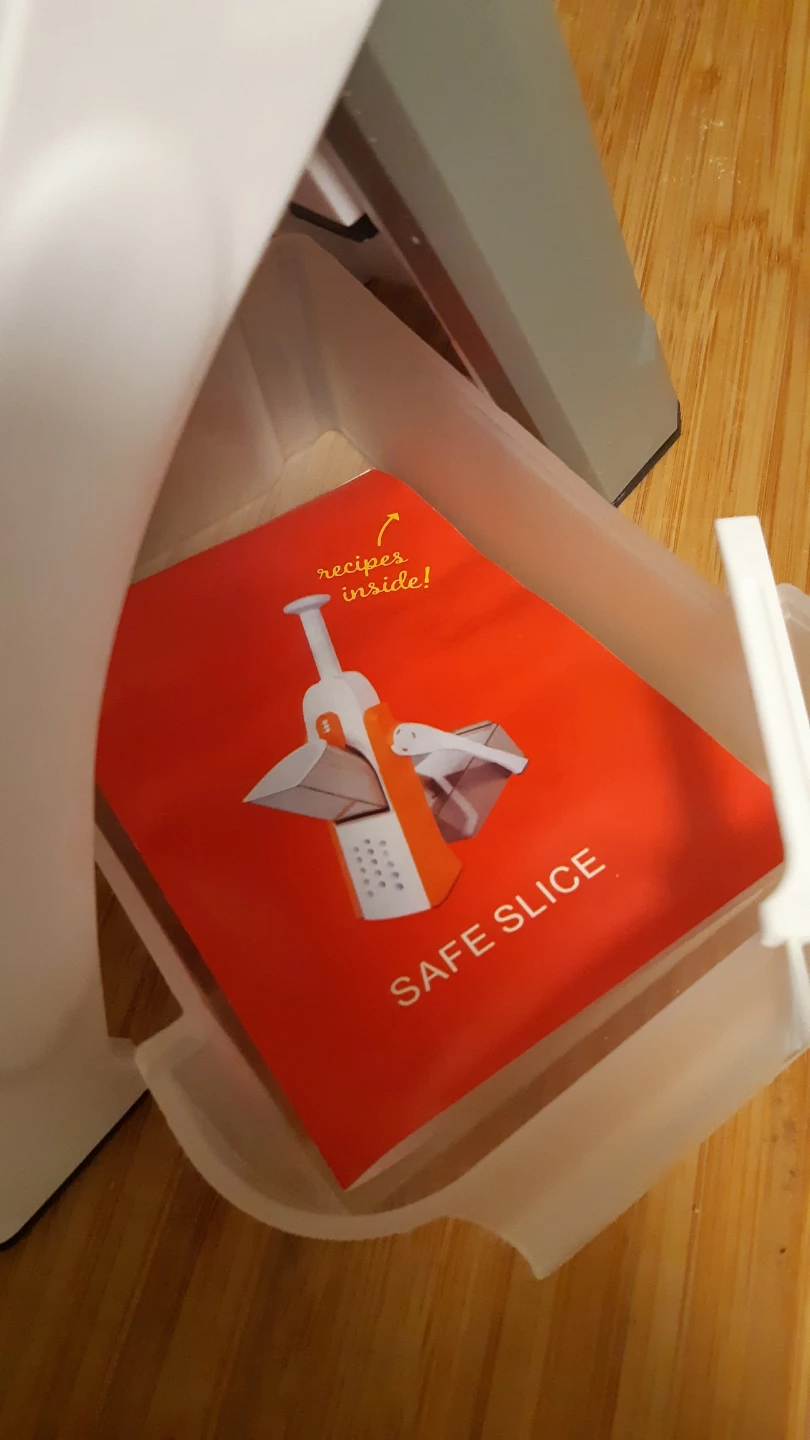 I'm selling a Safe Slice mandoline slicer. It's a great tool for quickly and safely slicing vegetables potatoes cheese and fruits! It's in brand new condition used once. I upgraded to an electric food processor