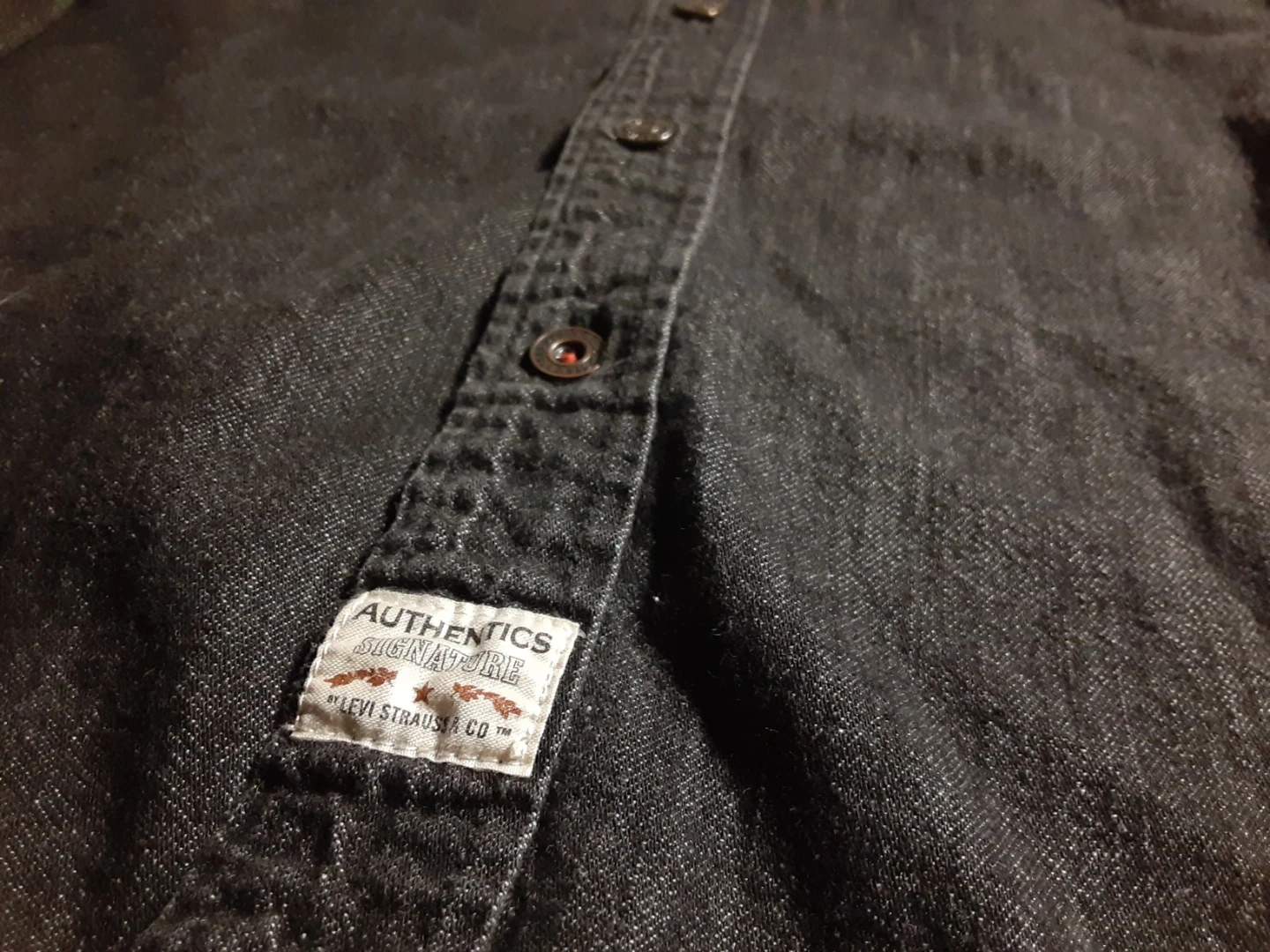 Signature by Levi Strauss & Co - small sized(see images for measurements), long sleeved, black denim button up shirt. Gently used, in excellent condition, 100% cotton.