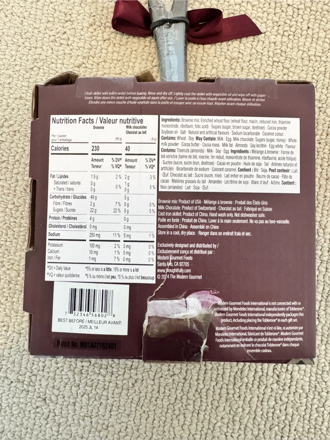 A brand new The Modern Gourmet Brownie Baking Kit! It includes brownie mix and Swiss milk chocolate, all ready to bake in the included cast iron skillet. A fun and easy treat to make at home!