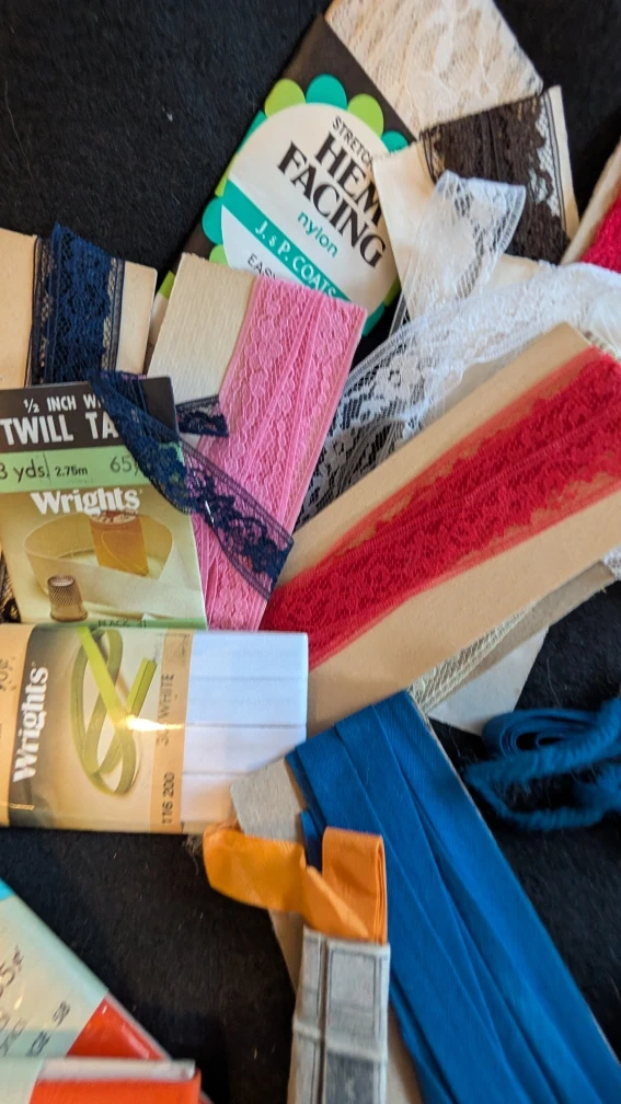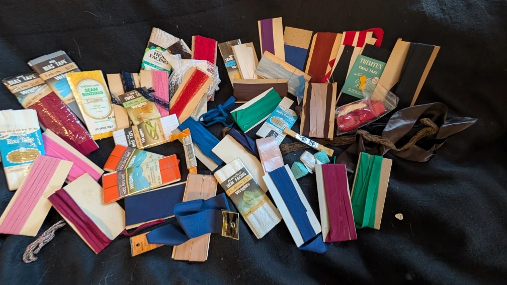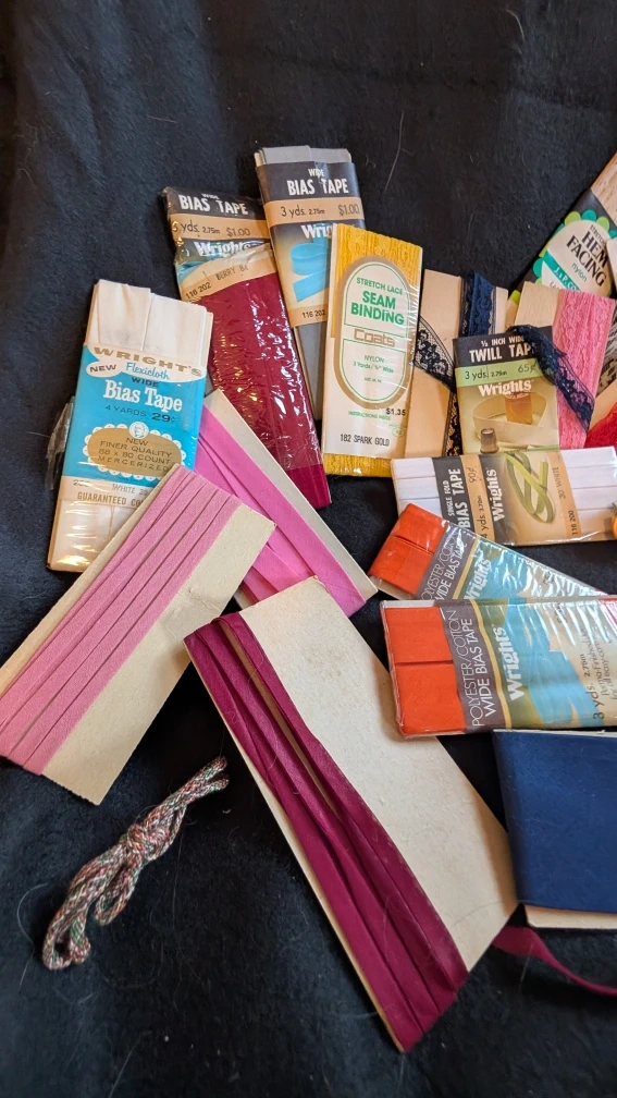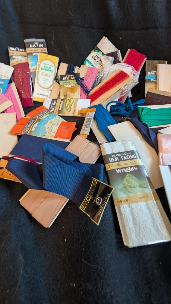 10Selling a lot of sewing trim, including bias tape, seam binding, hem facing, and twill tape in various colors and widths