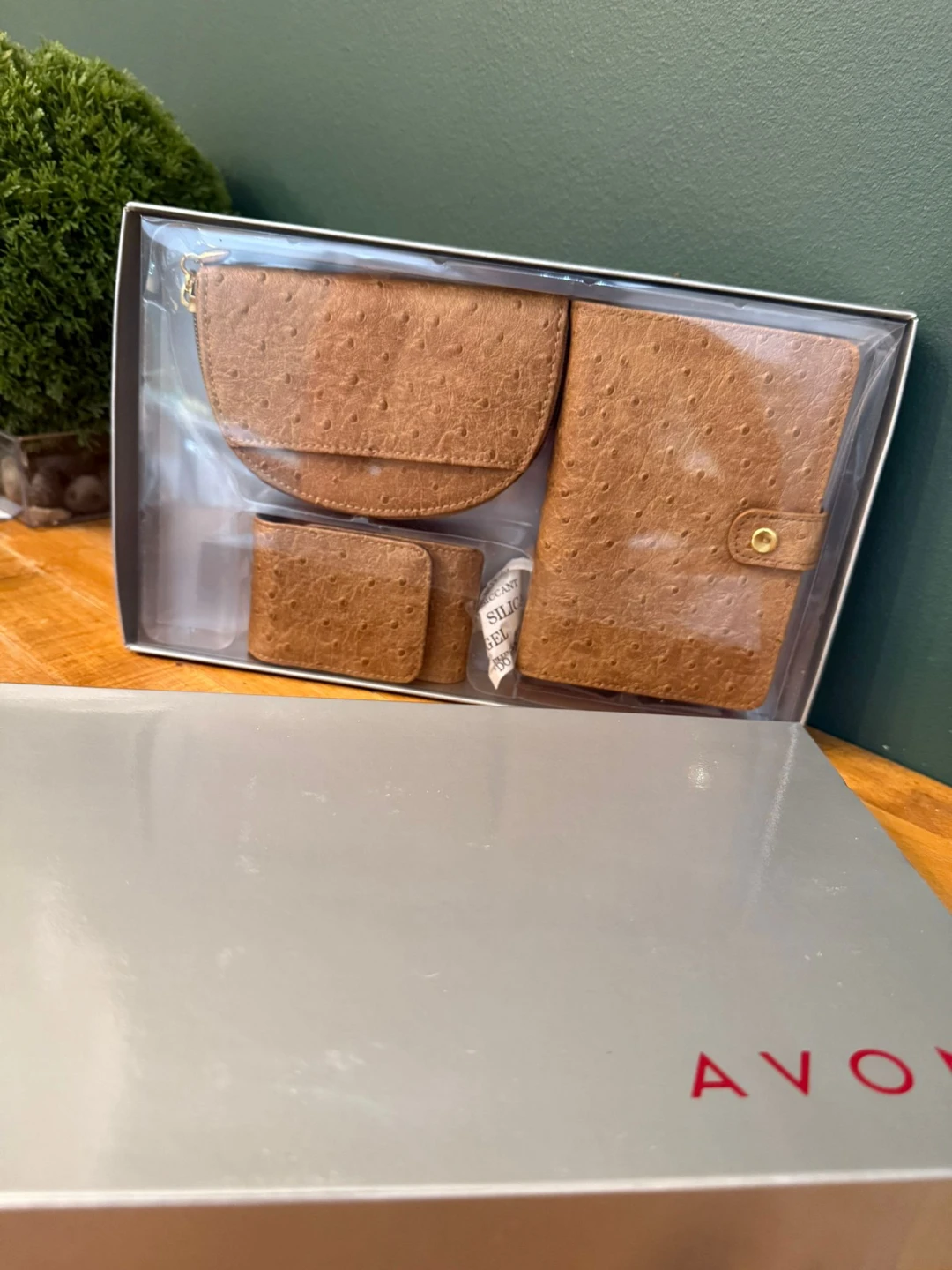 Avon Ostrich Look Wallet/Coin Purse 3 Piece Boxed Gift Set