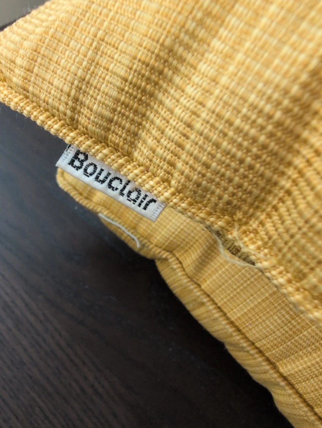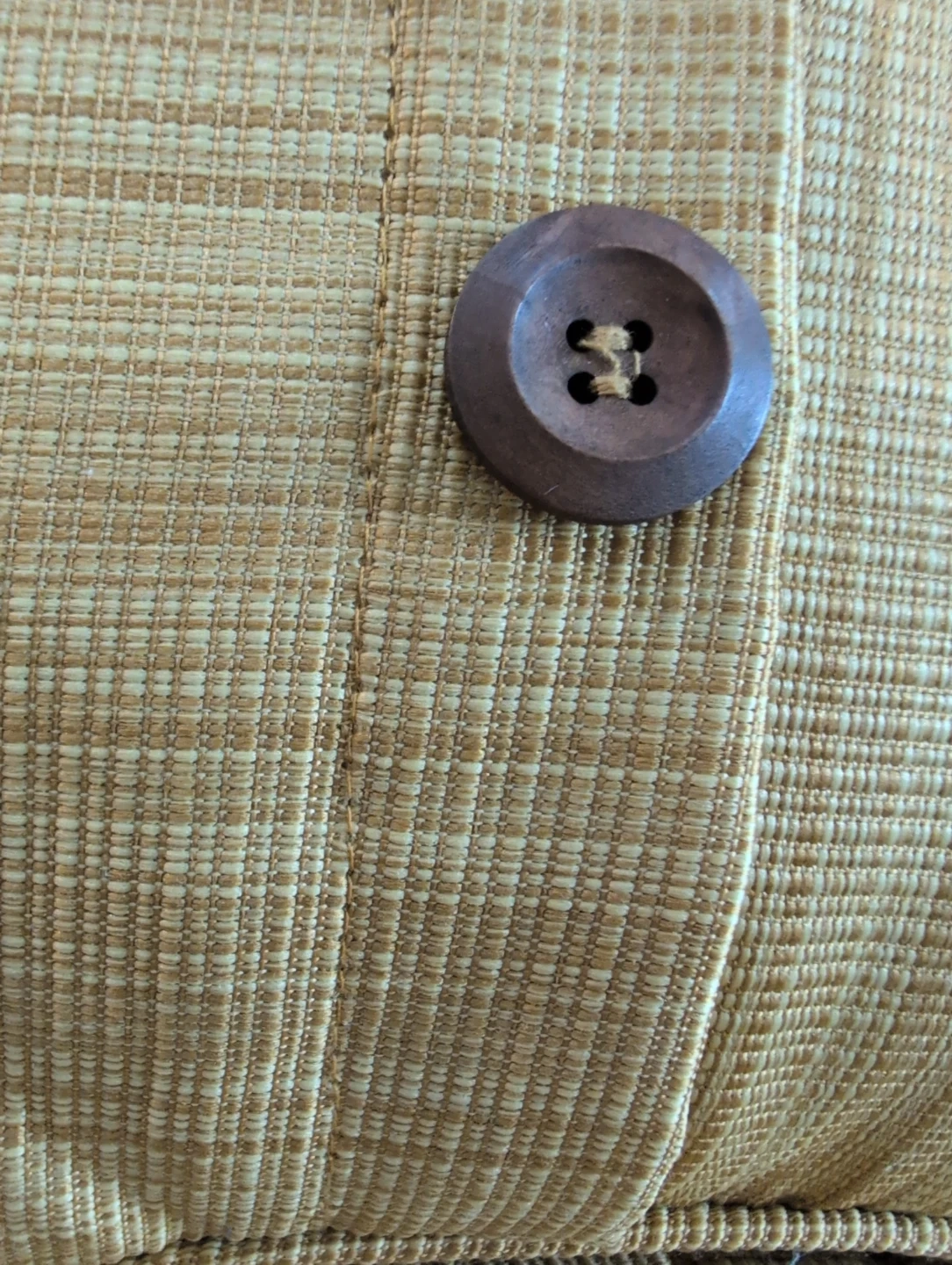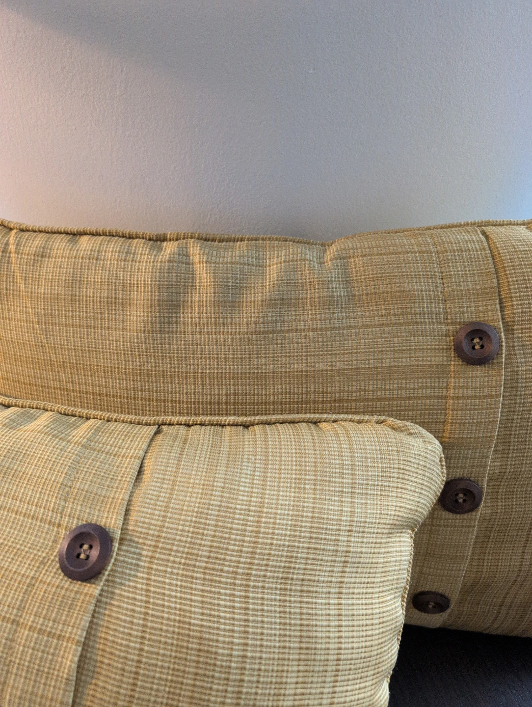 Two decorative pillows from Bouclair. They have a wooden button design and a nice textured fabric!