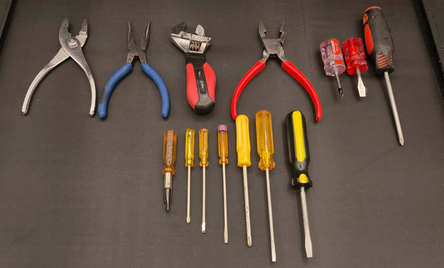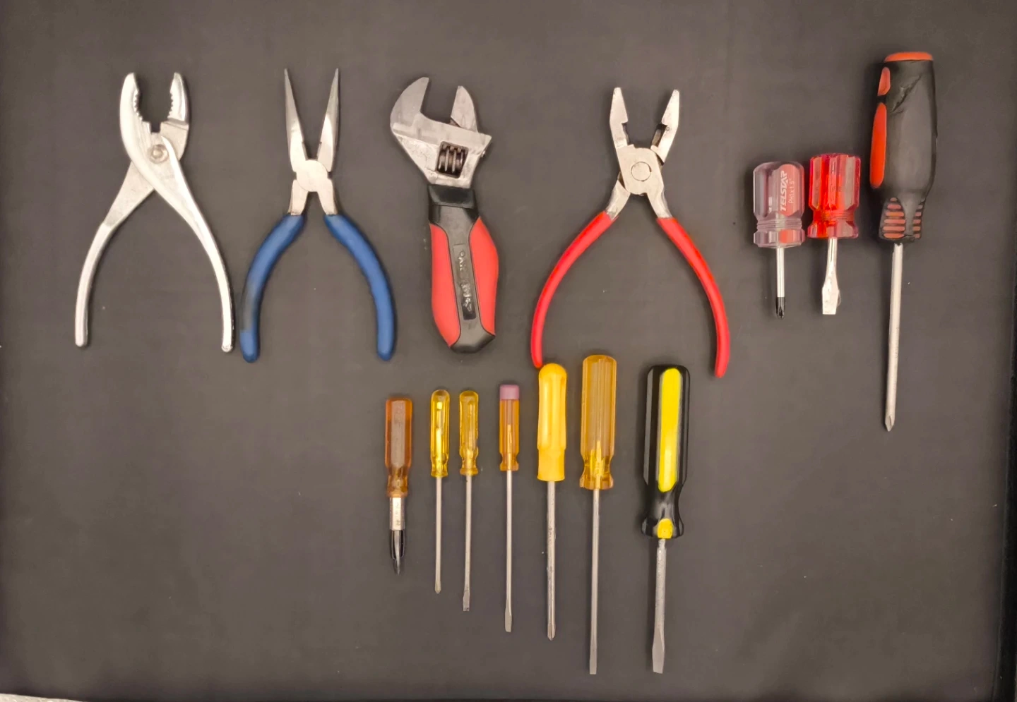 Selling a mixed set of hand tools. Includes pliers, screwdrivers, and an adjustable wrench. Great for any DIY project or home repair!