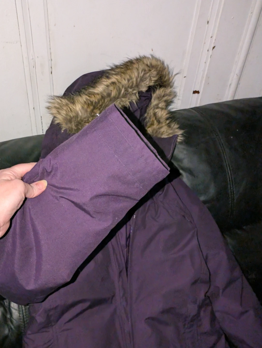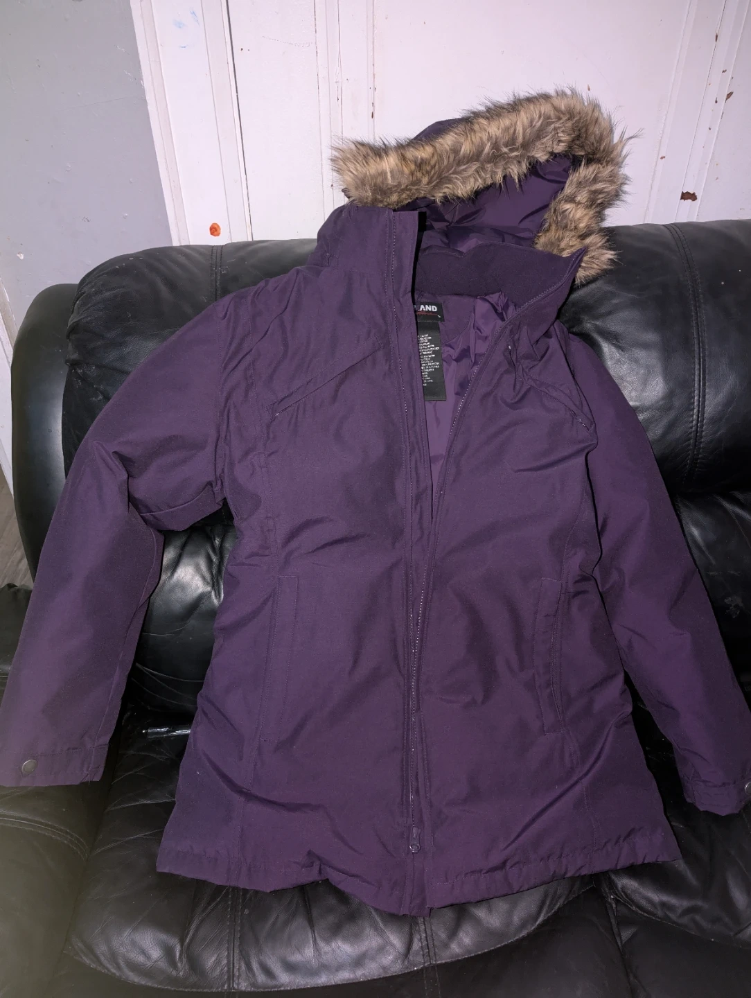 Selling a Kirkland Signature down parka in a beautiful purple colour! It has a faux fur trim on the hood to keep you extra warm and cozy. Perfect for those cold Canadian winters!
