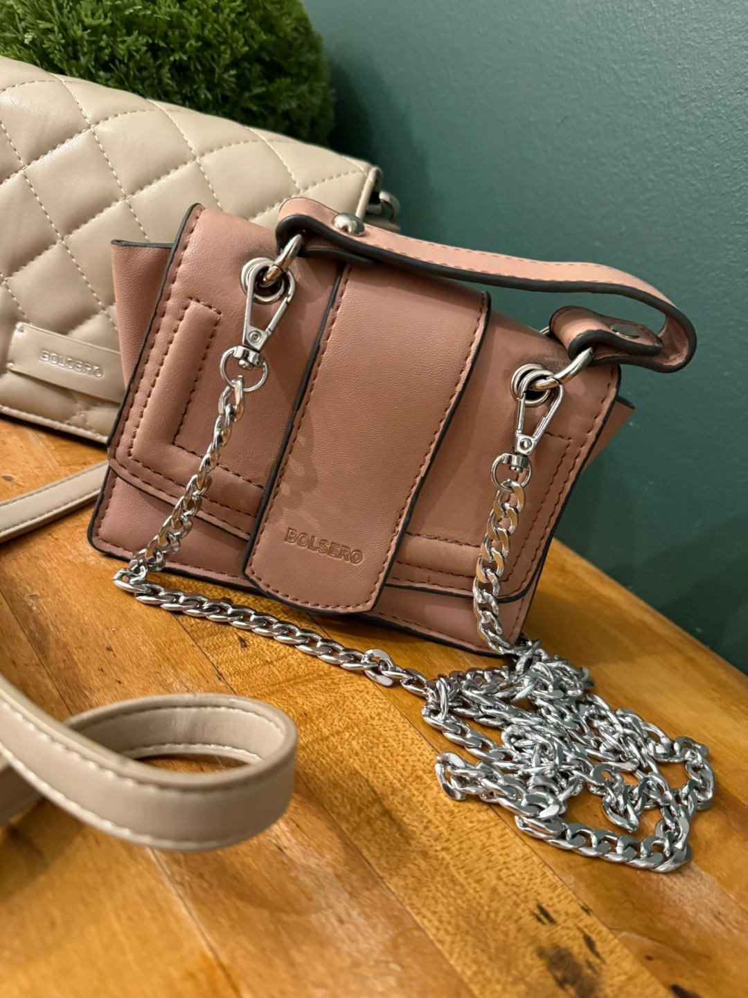 Bolsero Pink Mini Crossbody Bag / Beige Crossbody