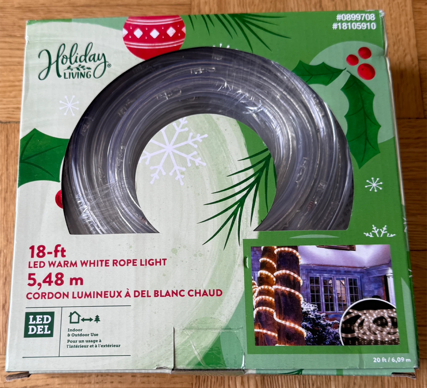 Here's an 18-ft LED warm white rope light from Holiday Living! It's perfect for adding a cozy glow to any indoor or outdoor space. It comes with tie straps, mounting clips and screws included. The box is also included!