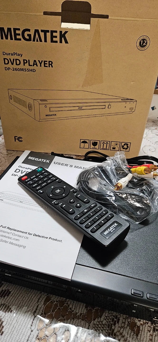 Selling a Megatek DuraPlay DVD player, model DP-260M55HD. It comes with the original box and all included components like the remote and cables. Great for watching your favourite DVDs!