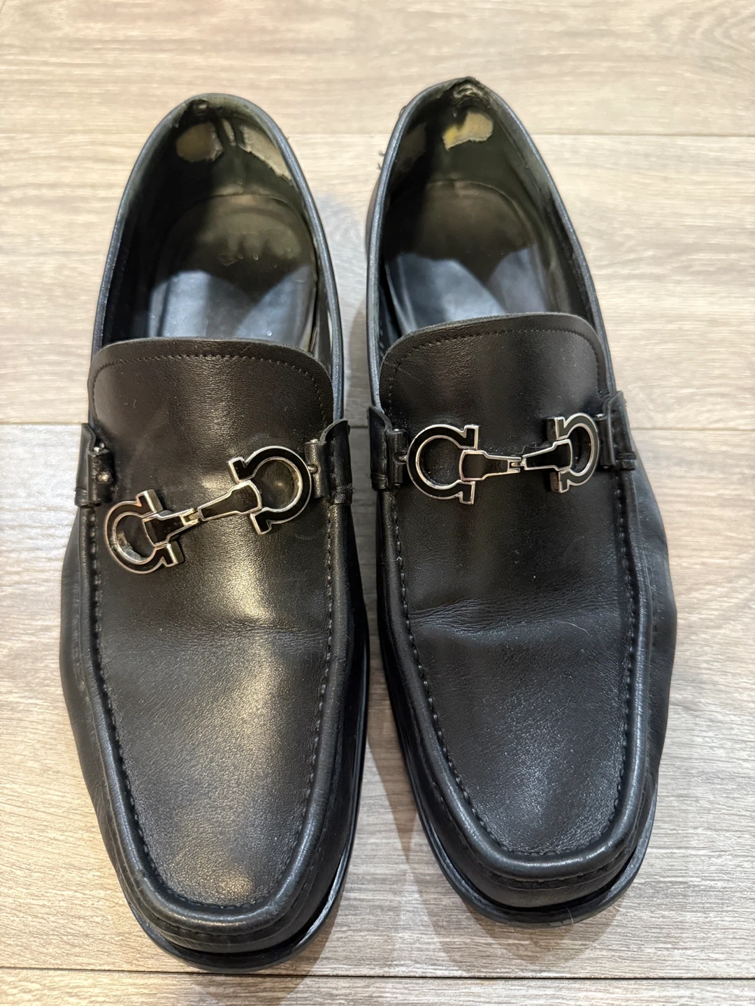 353Selling a pair of Salvatore Ferragamo black leather loafers. They show some signs of wear, as you can see in the photos, but they still have a lot of life left in them! Perfect for dressing up or down.