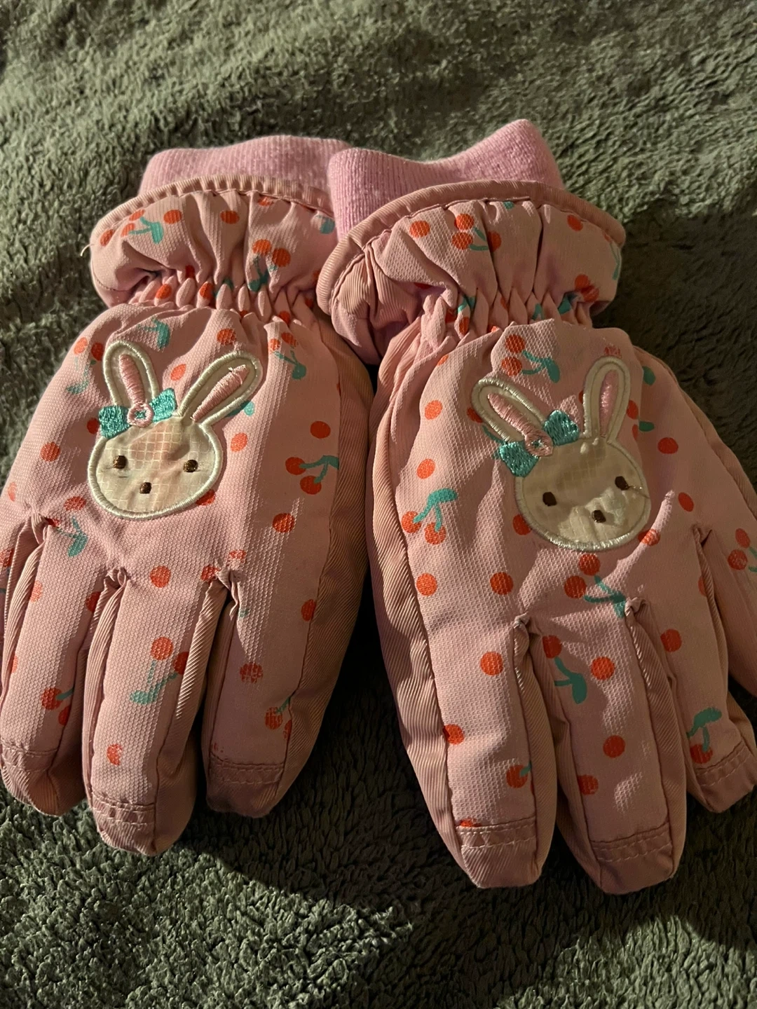 These adorable girls' winter gloves are in great condition and ready to keep little hands warm! They feature a cute bunny design and are a lovely shade of pink. Perfect for playing in the snow or just keeping cozy on chilly days