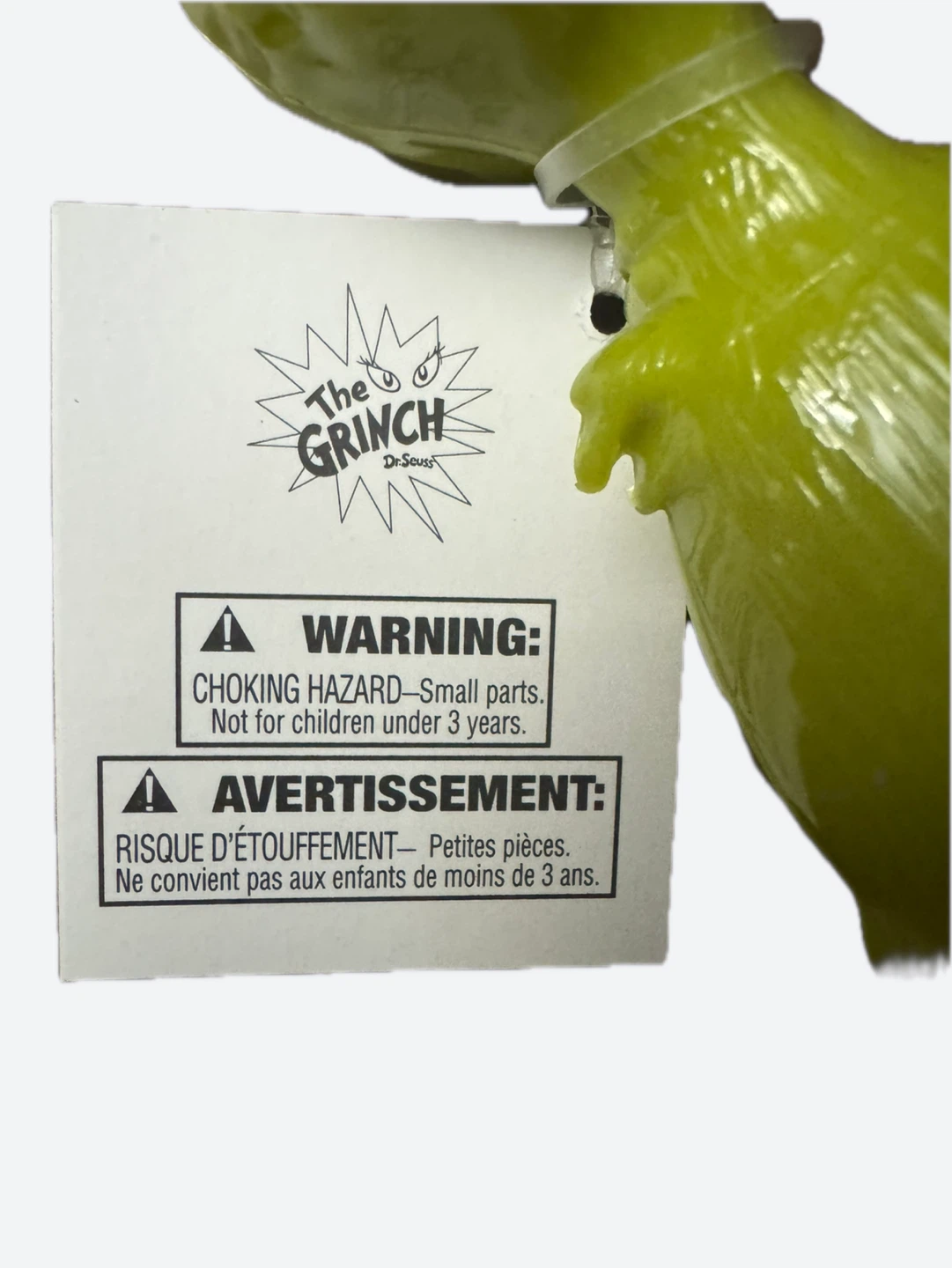 One sock is red with the Grinch and the McDonald's logo, and the other is blue with Max the dog.