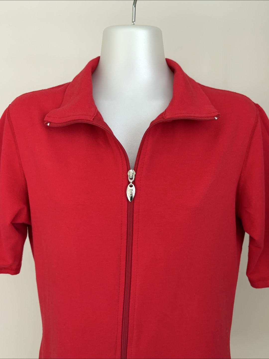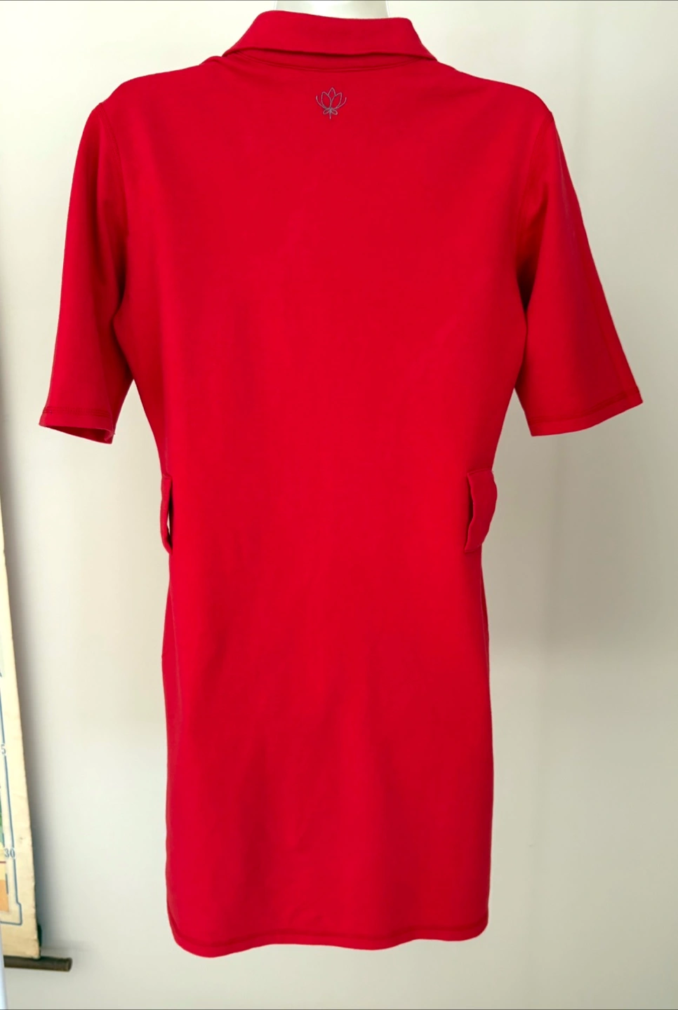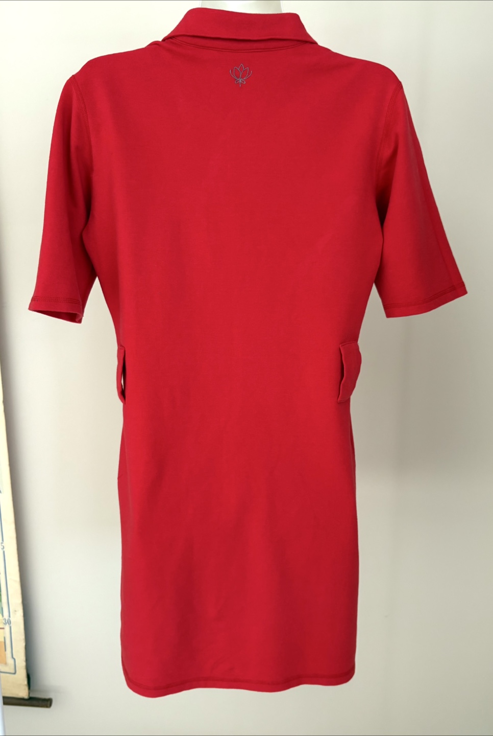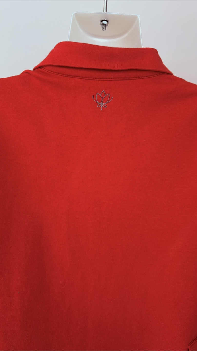 Red stretchy comfortable yoga wear/workout top by Lotus Wear.