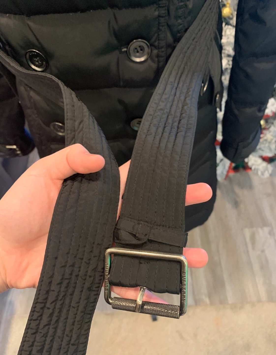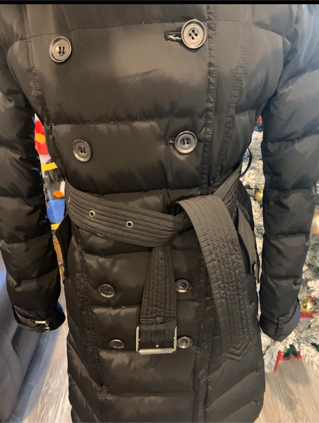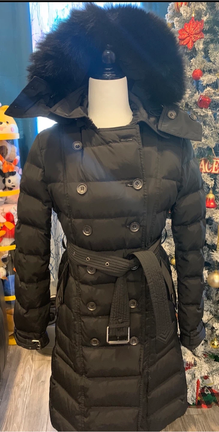 This is a preused Burberry coat that's perfect for staying warm and fashionable during winter. This coat features a flattering silhouette and is in good condition.