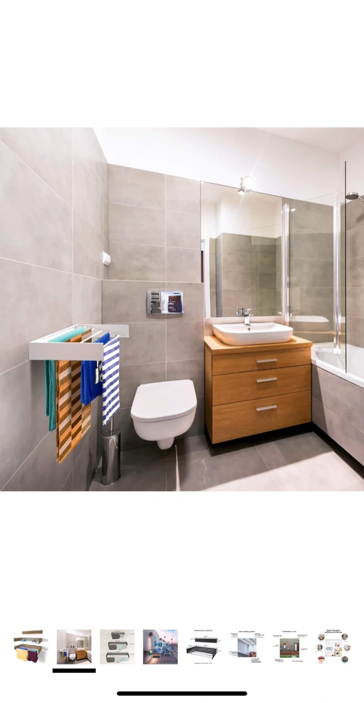 This is a wall-mounted clothes drying rack. It's a great space-saving solution for laundry rooms or bathrooms. The rack features multiple rods for hanging clothes and can be folded away when not in use