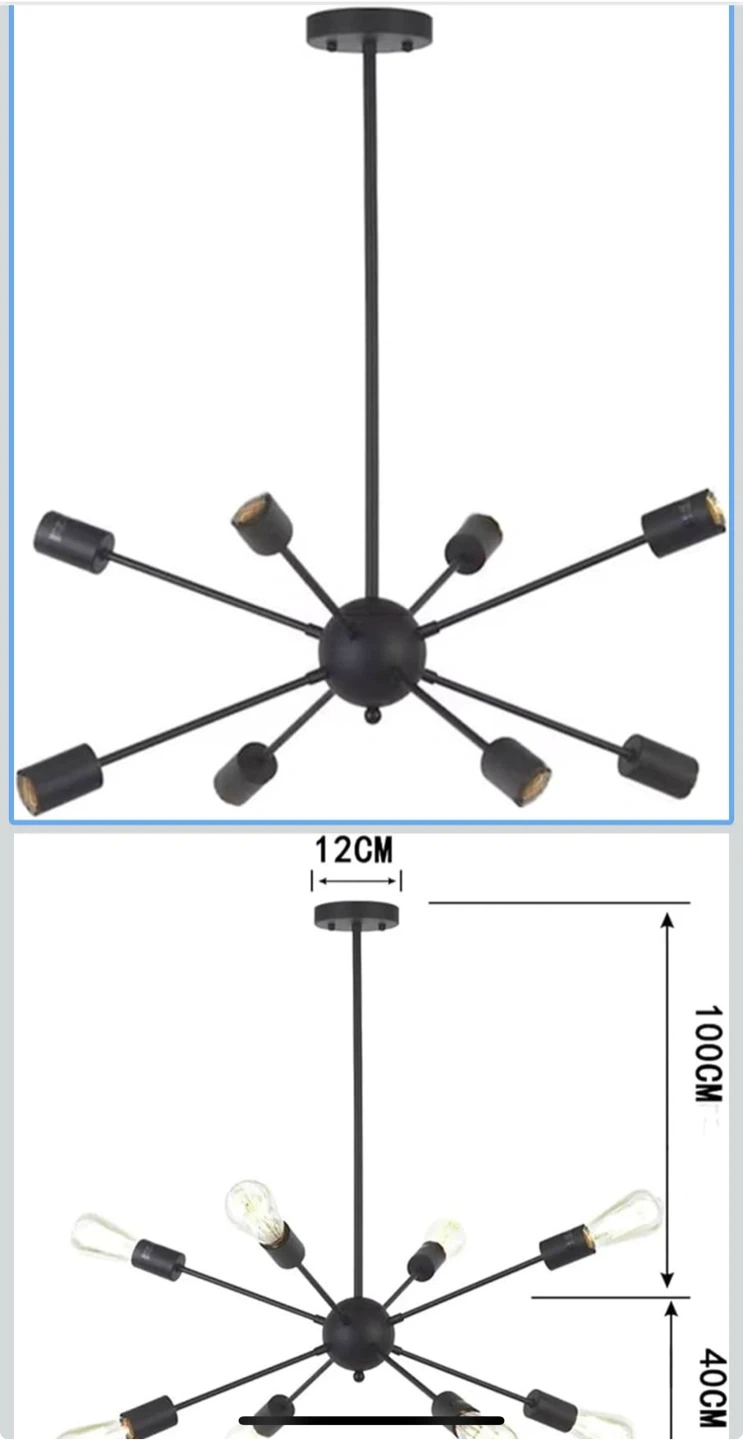 Add a touch of modern flair to your space with this stylish black Sputnik chandelier! It features a unique design with multiple arms extending from a central sphere. Please note that bulbs are not included, allowing you to customize the lighting to your preference. Easy to install and perfect for any room!