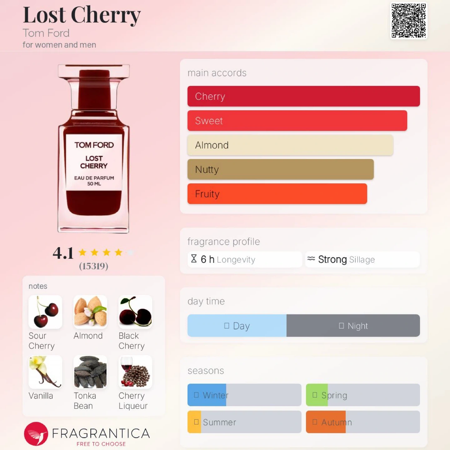 Lost Cherry is a standout from Tom Fordβs Private Blend line: a seductive blend of rich cherry, warm almond and deep woods designed to leave an impression.