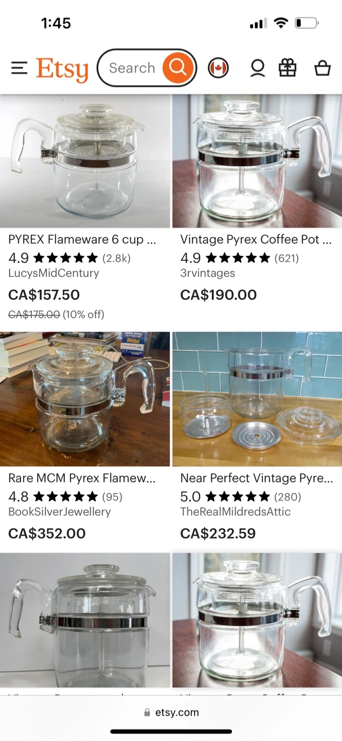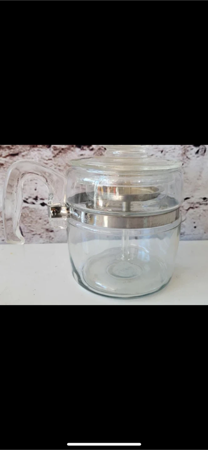Here's a rare Pyrex Flameware 6-cup coffee percolator! It's in great shape and ready to make some delicious coffee. This percolator is perfect for anyone who loves a classic, old-fashioned brewing method. It's a timeless piece! This vintage Pyrex percolator retails over 300 for some sellers see pictures. Selling this rare item for 30