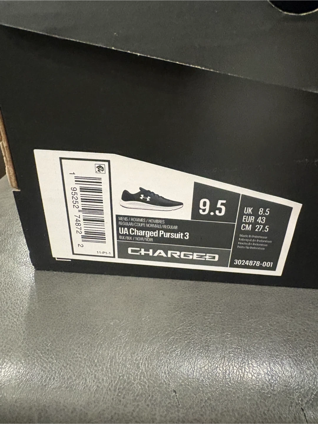 Selling a pair of brand new in box Under Armour Charged Pursuit 3 running shoes in men's size US 9.5. They're in great shape and ready for a new home!